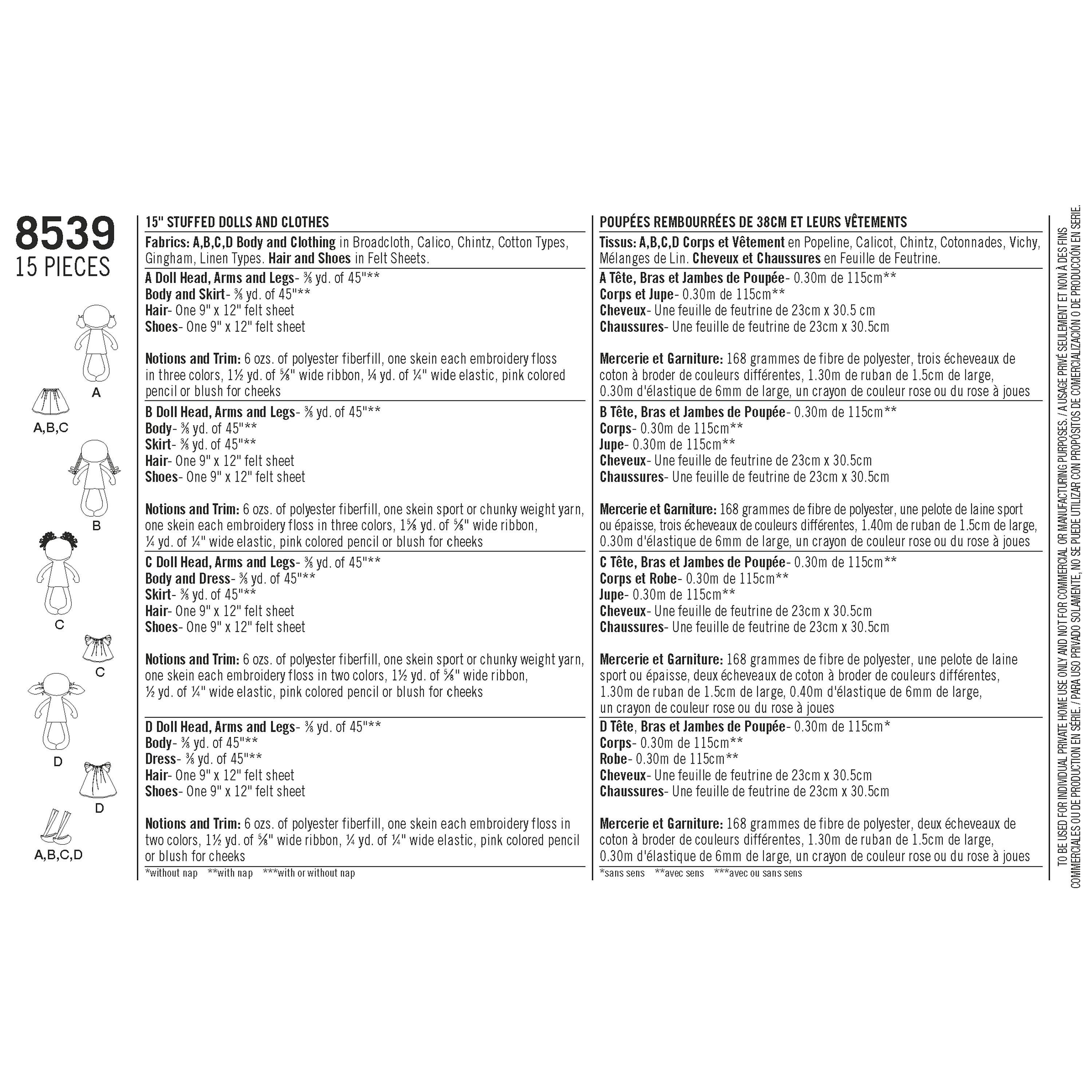 SimplicityStuffed Doll Sewing Pattern, 8539