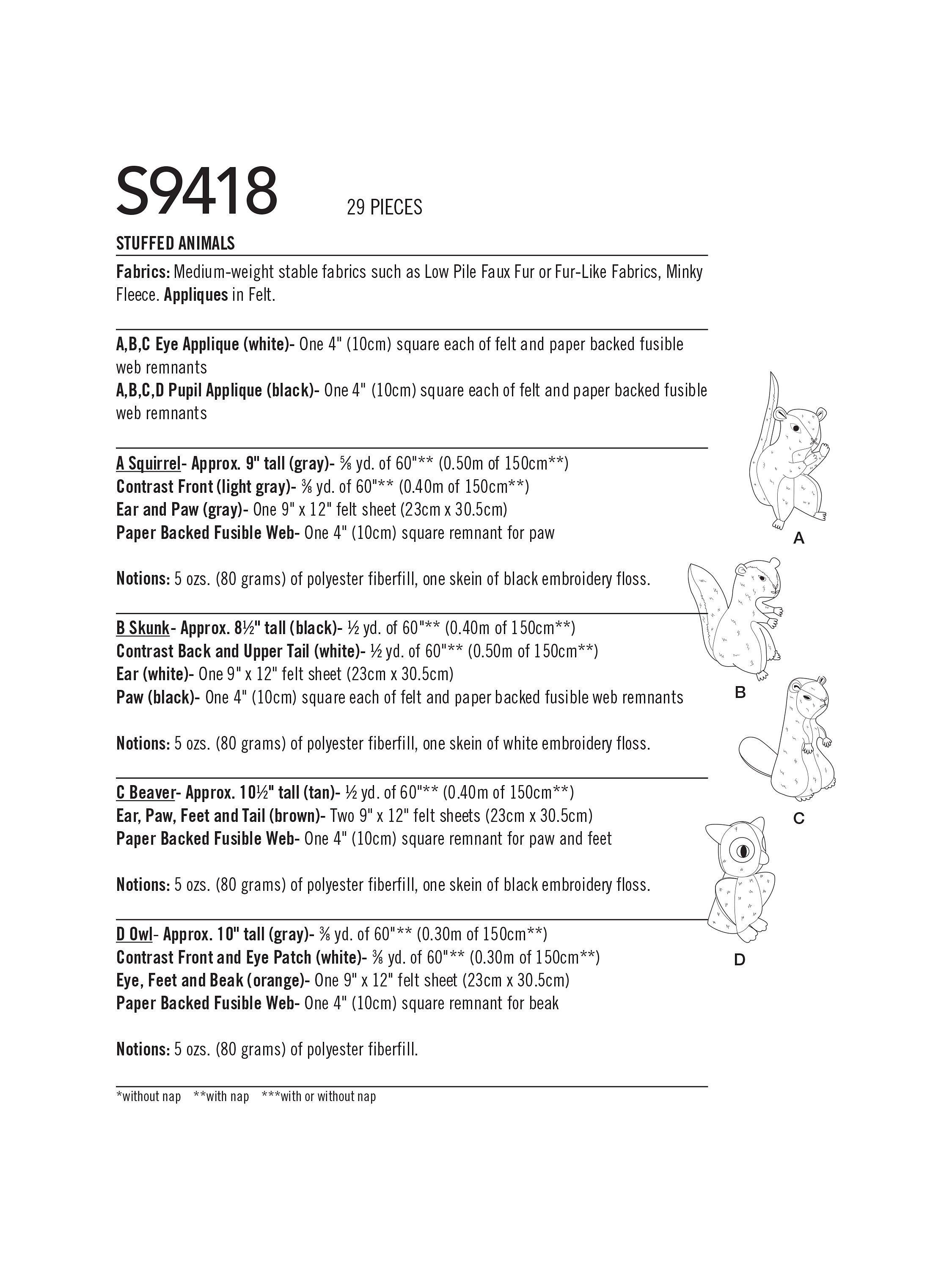 SimplicityStuffed Woodland Animals Sewing Pattern, S9418