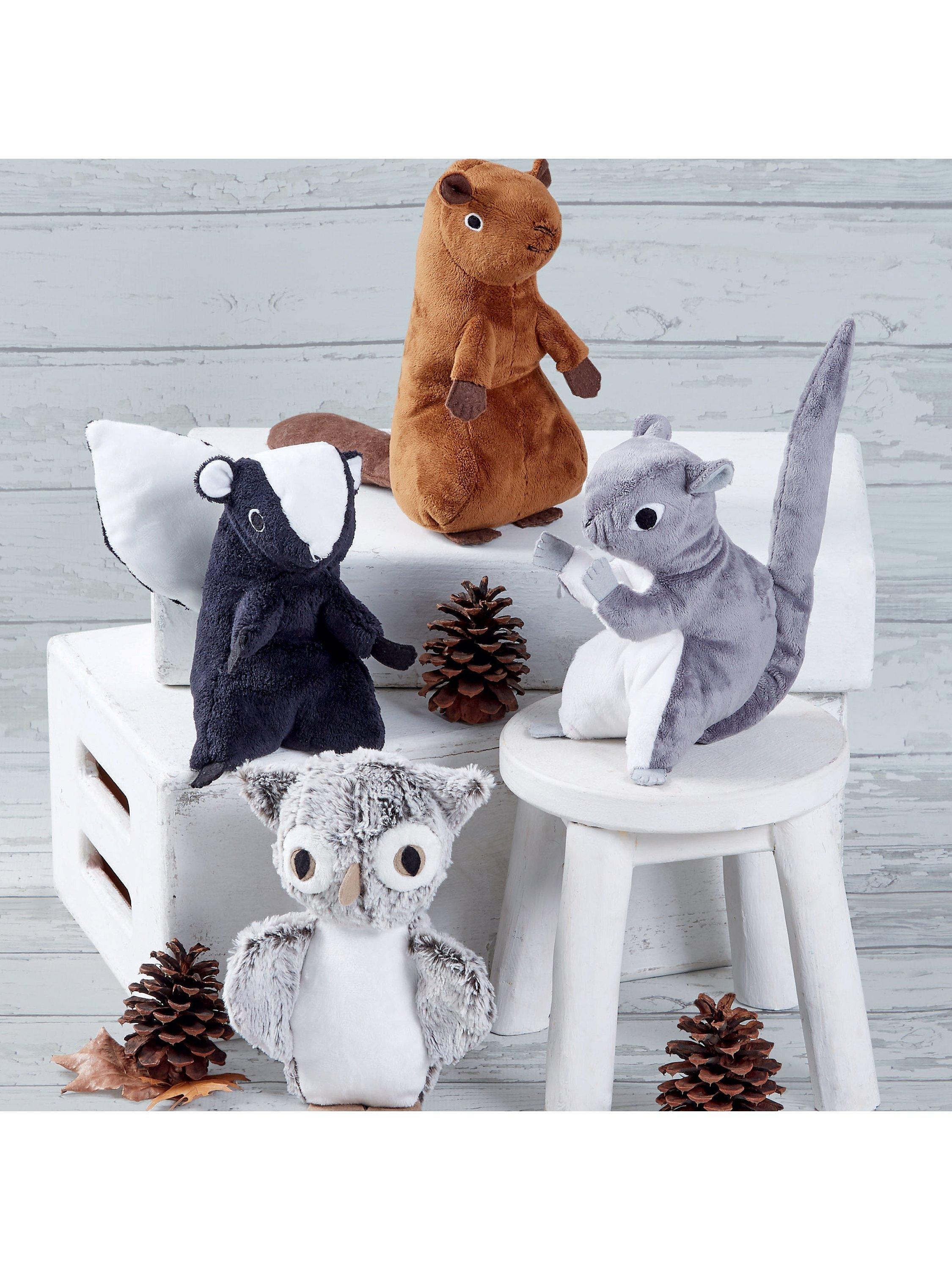 Make your own cuddly stuffed owl, squirrel, skunk or beaver.