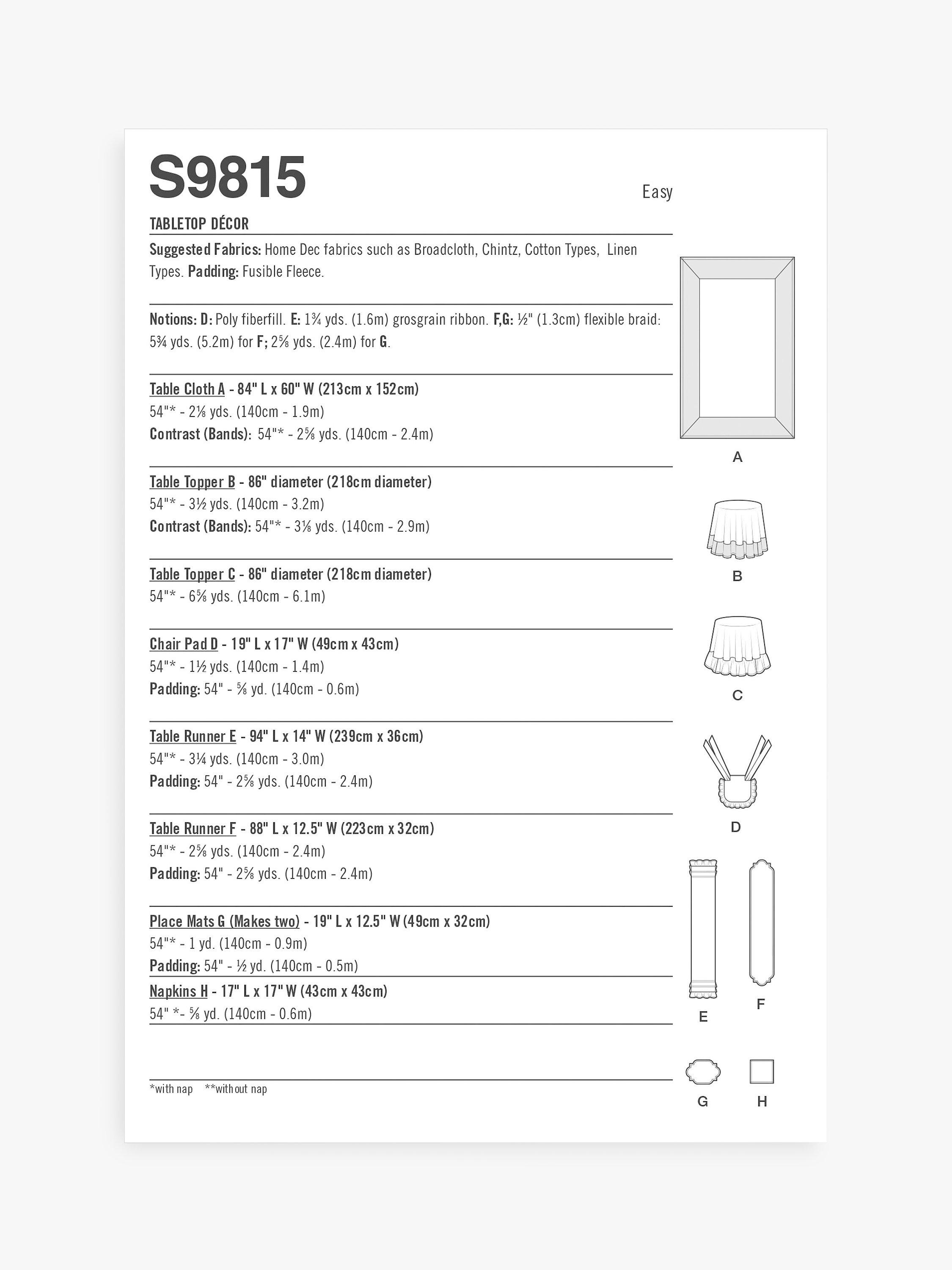 SimplicityTabletop Decor Sewing Pattern, S9815
