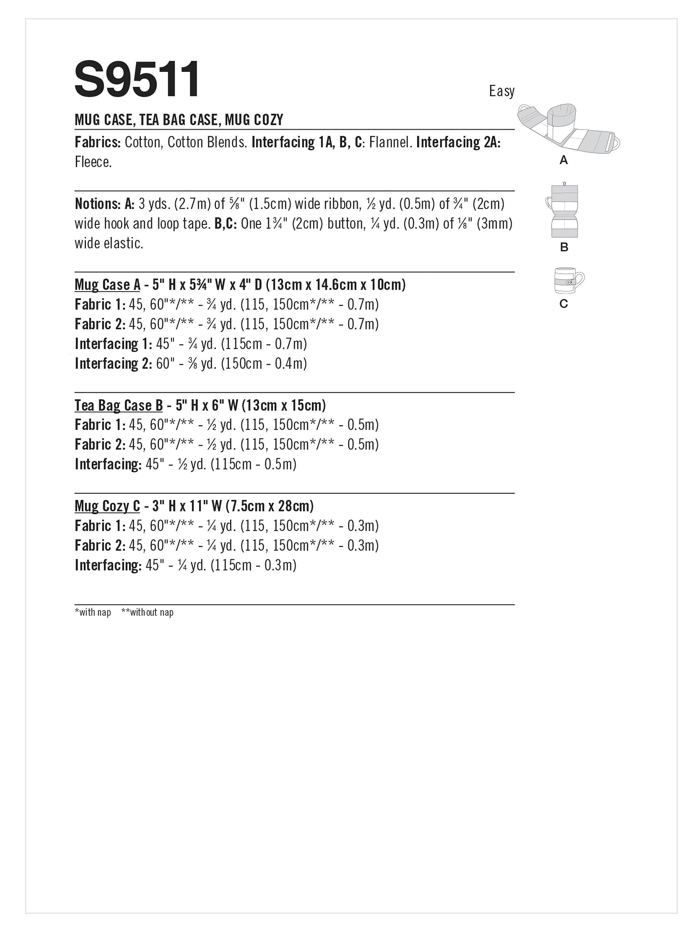 SimplicityTea Time Accessories Sewing Pattern S9511, OS