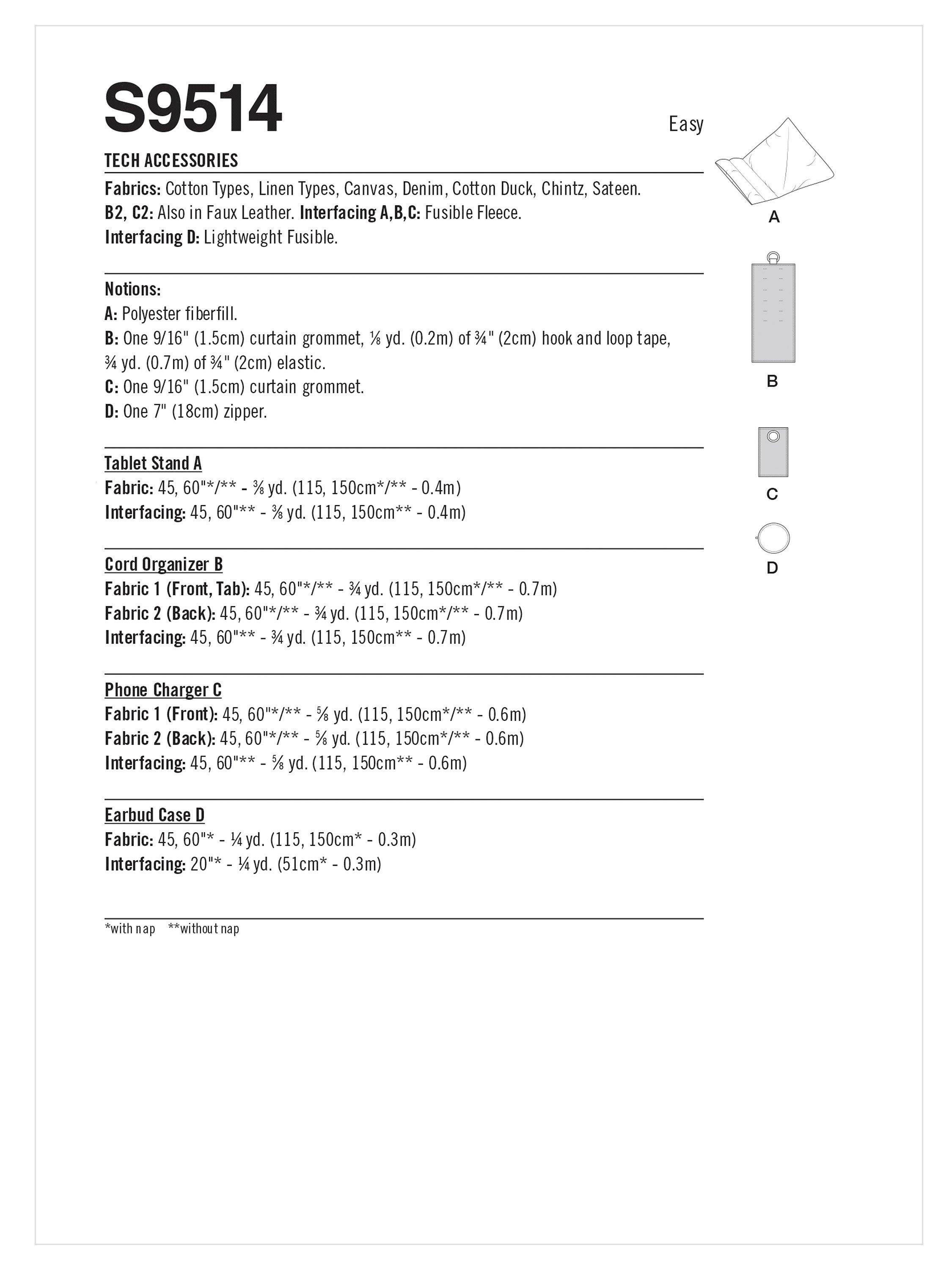 SimplicityTech Accessories Sewing Pattern, S9514, OS