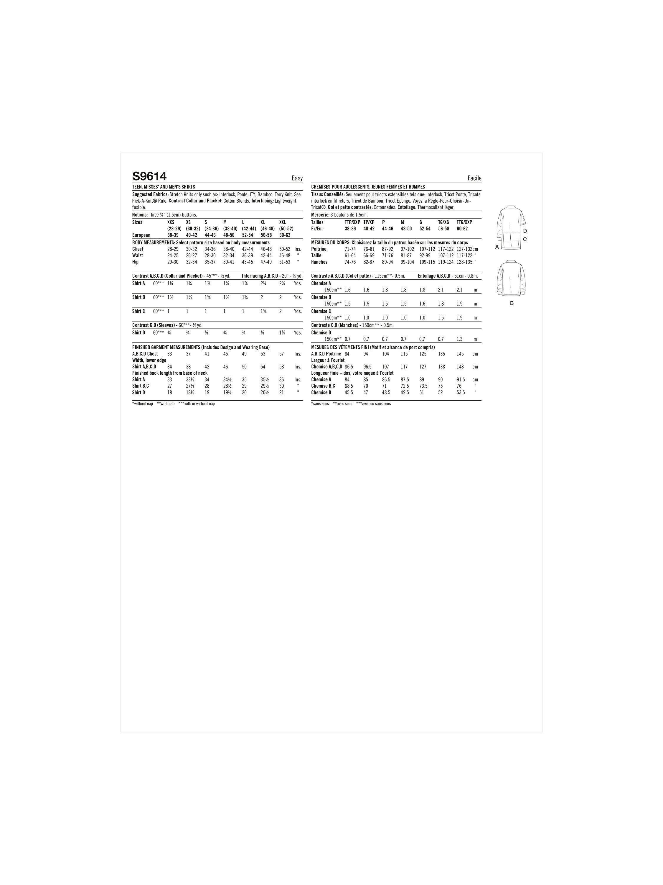 SimplicityTeen, Misses' and Men's Shirts Sewing Pattern, S9614A