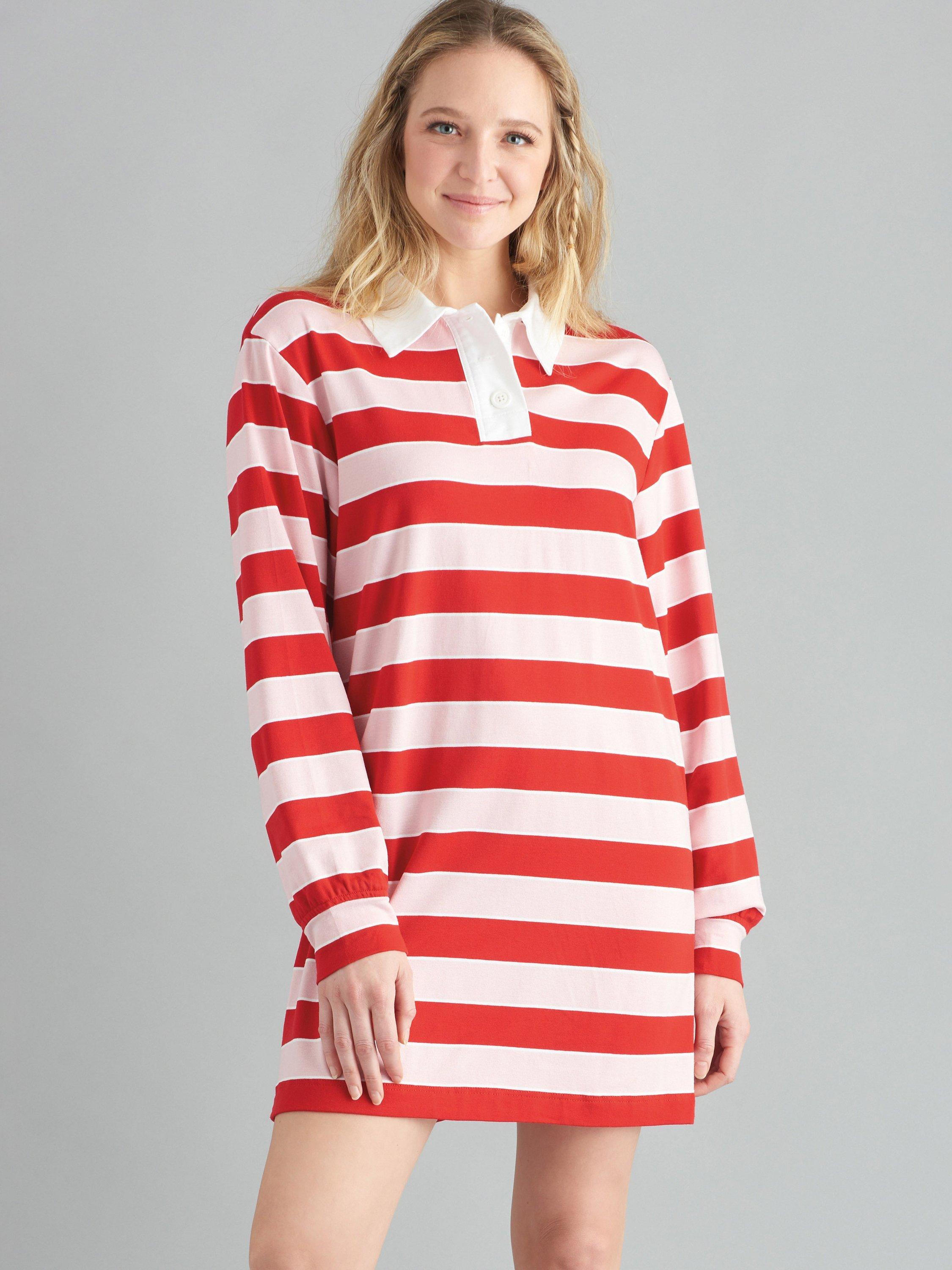 Oversized knit polo shirts have long or short sleeves, options for contrast sleeves, collars and packets.