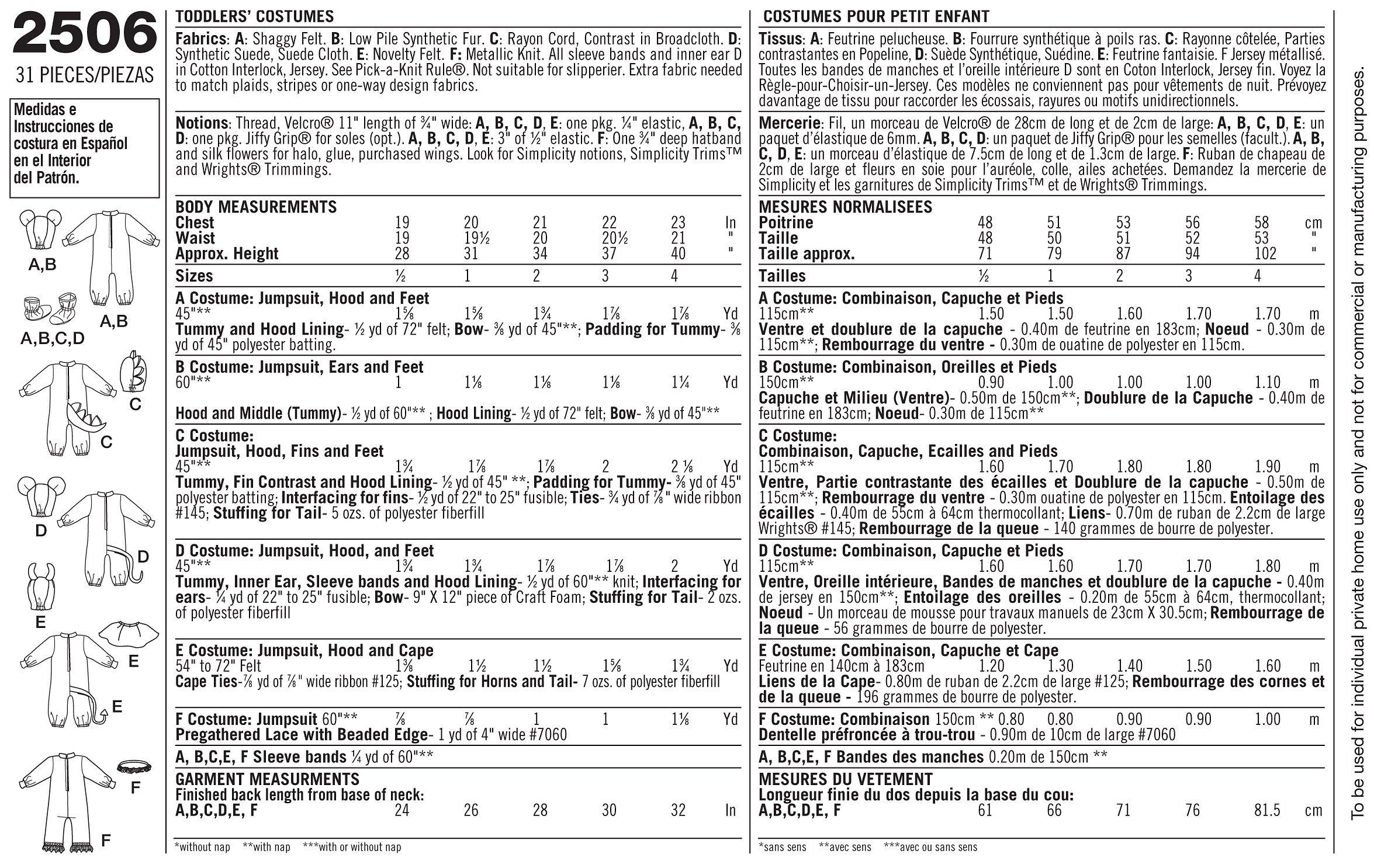 SimplicityToddler Costumes Sewing Pattern, 2506, A