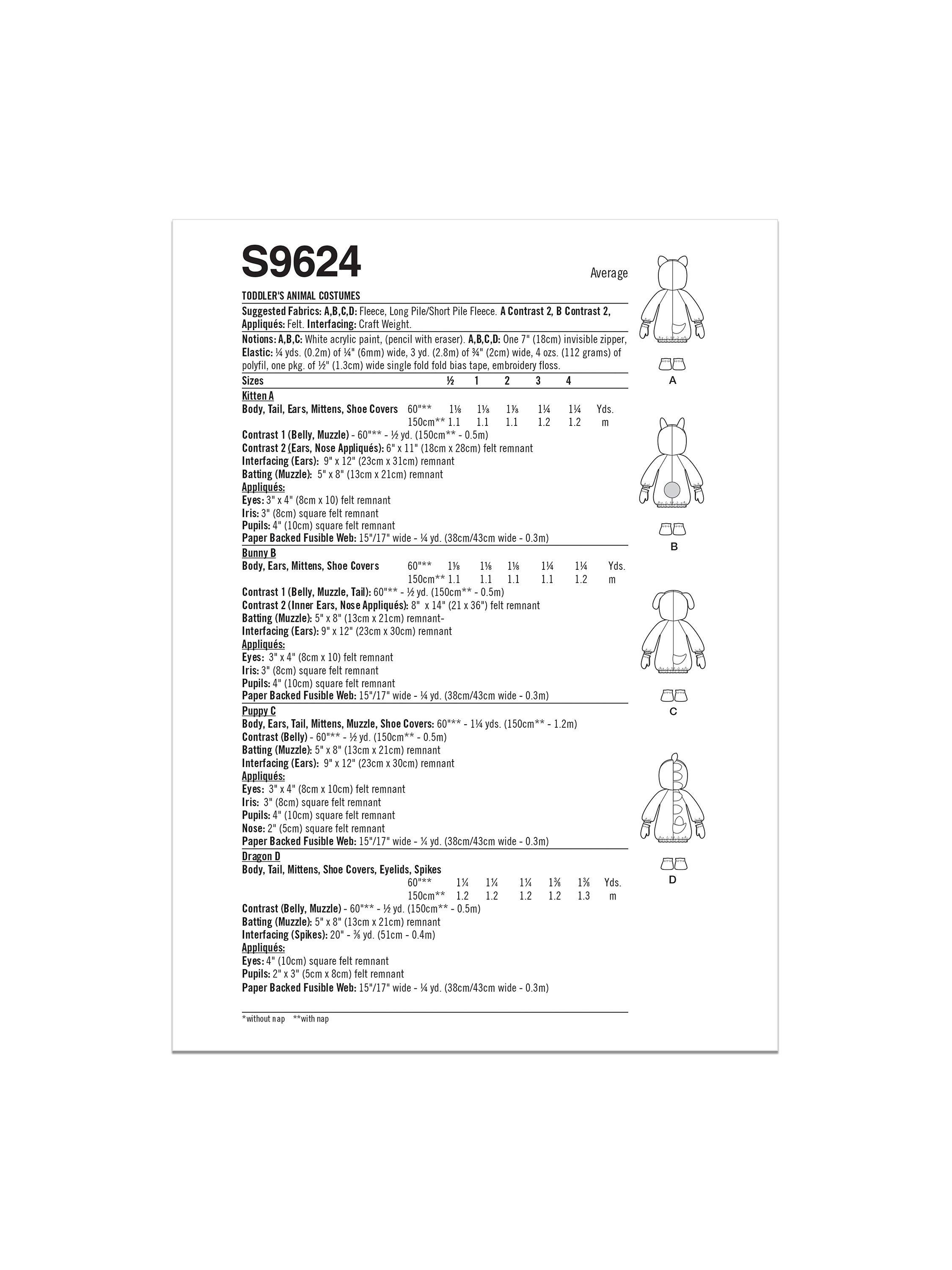 SimplicityToddler's Animal Costumes Sewing Pattern, S9624