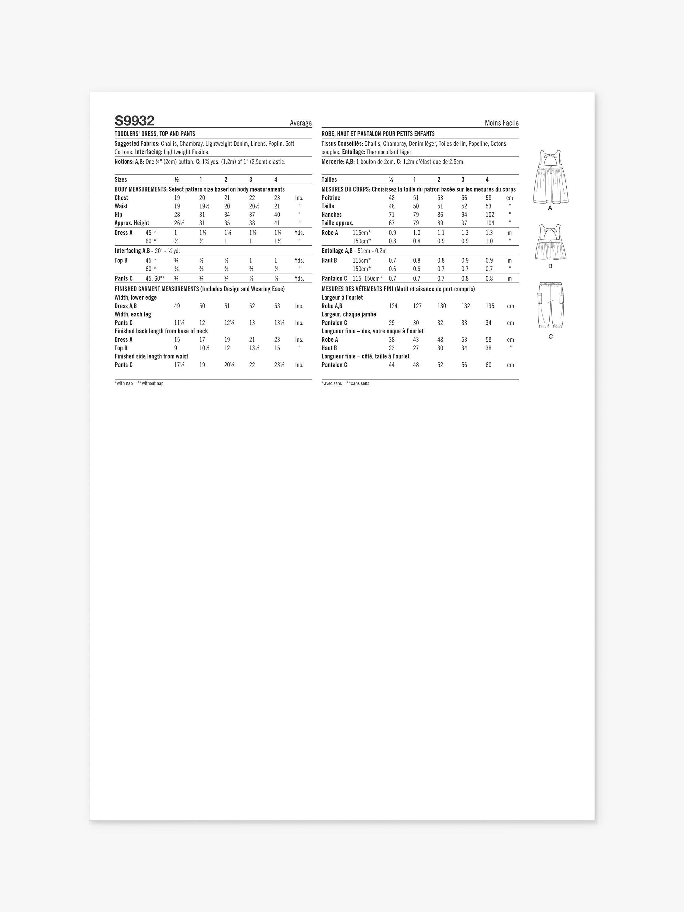 SimplicityToddlers' Dress, Top and Pants Sewing Pattern, S9932