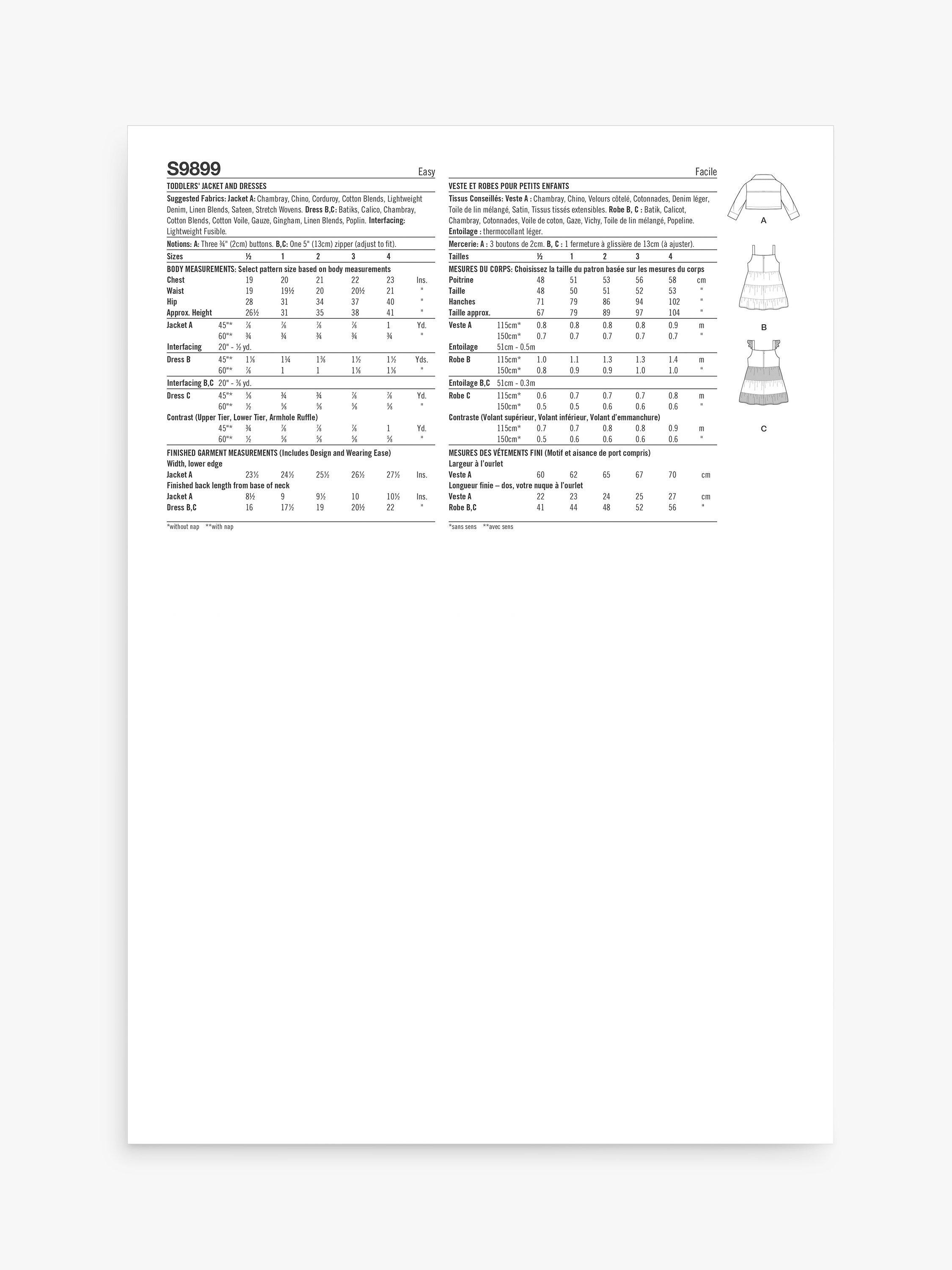 SimplicityToddlers' Jacket and Dresses Dresses Sewing Pattern, S9899