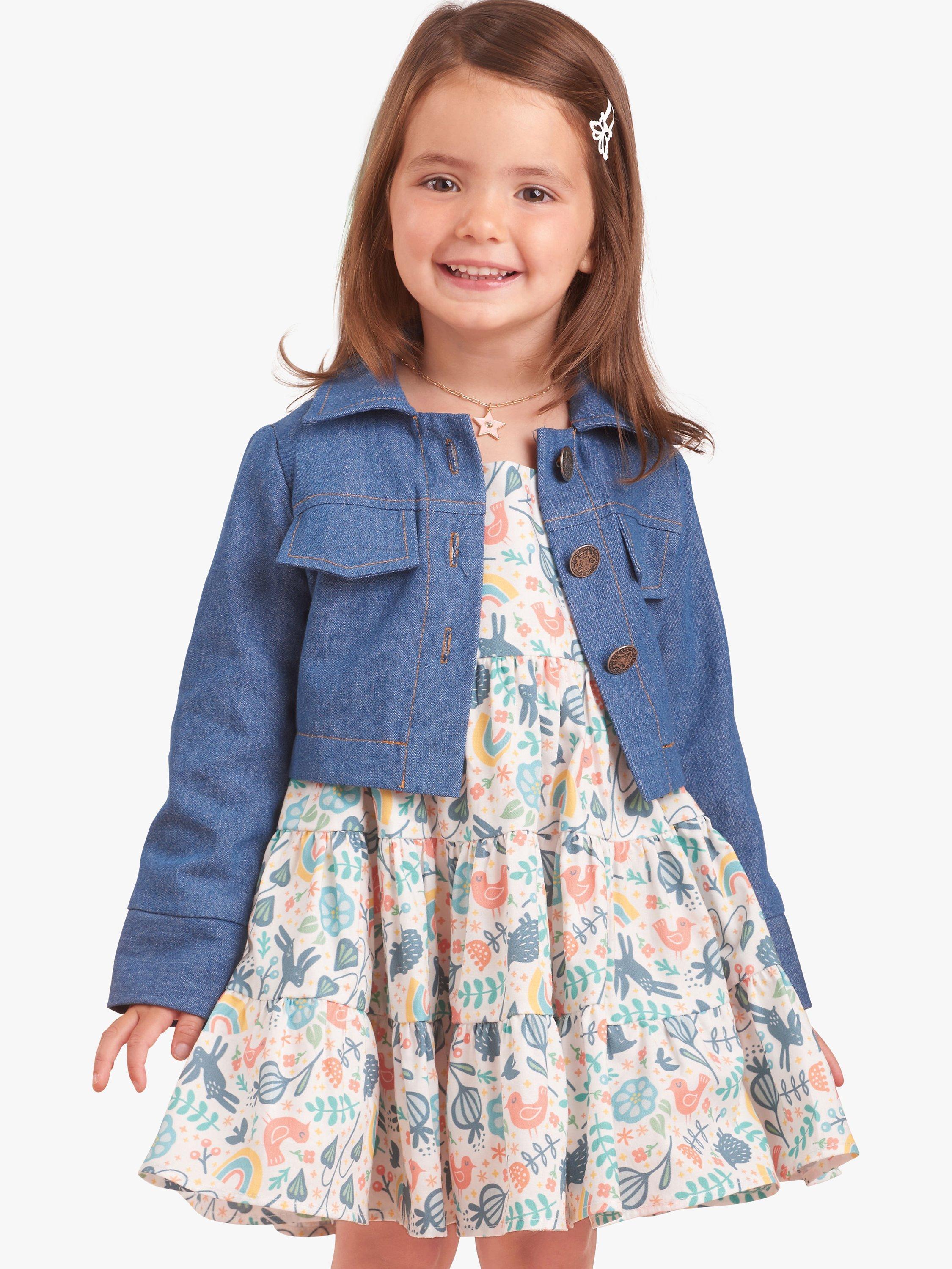 Create this easy-to-sew jean jacket and dress for toddlers.