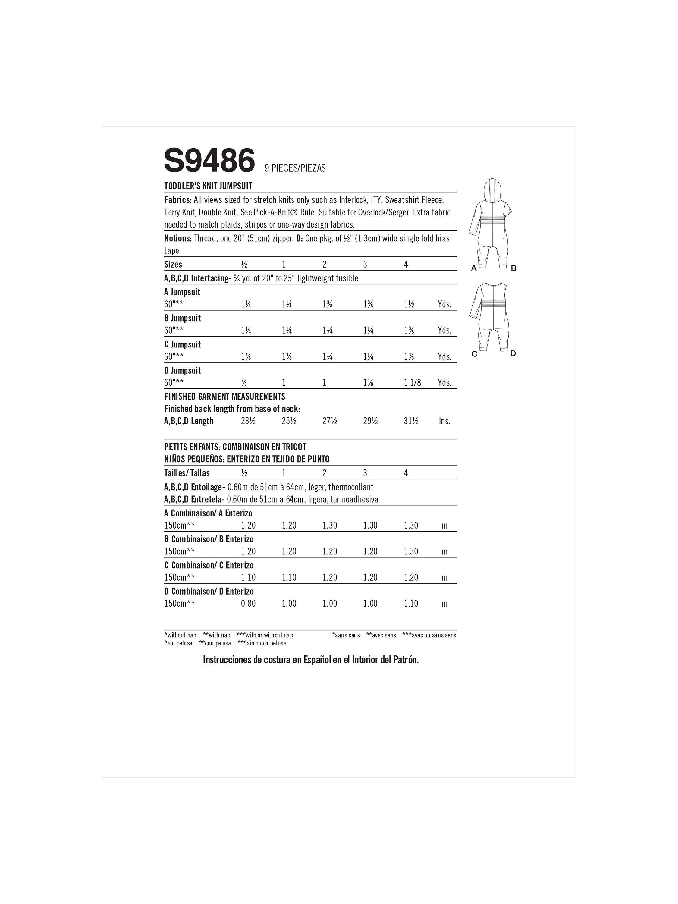 SimplicityToddler's Knit Jumpsuit Sewing Pattern, S9486A