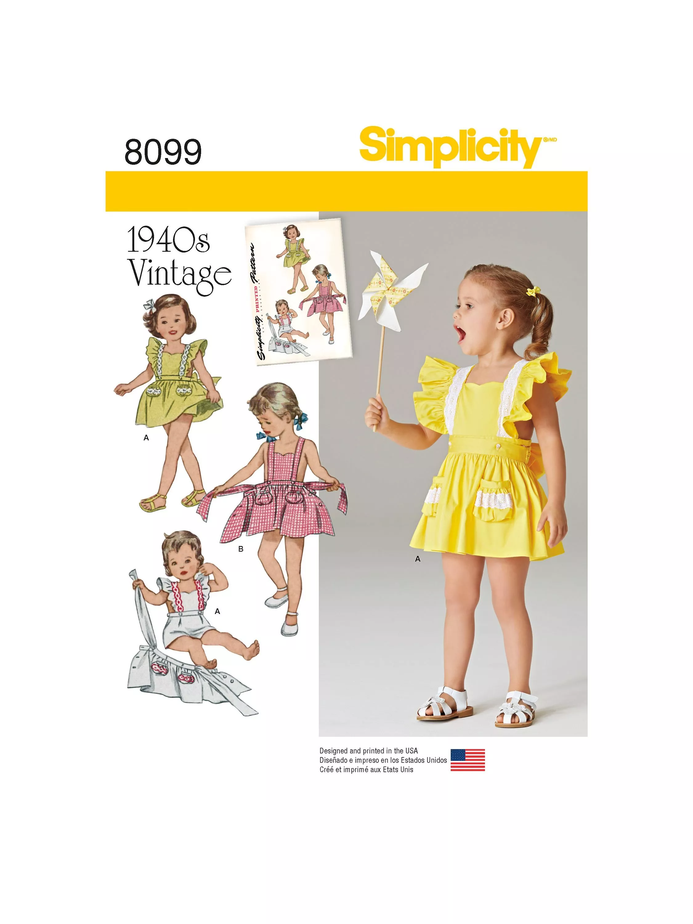 This vintage pattern for toddlers can be worn as a romper or a skirt, with buttons and/or tie waist.