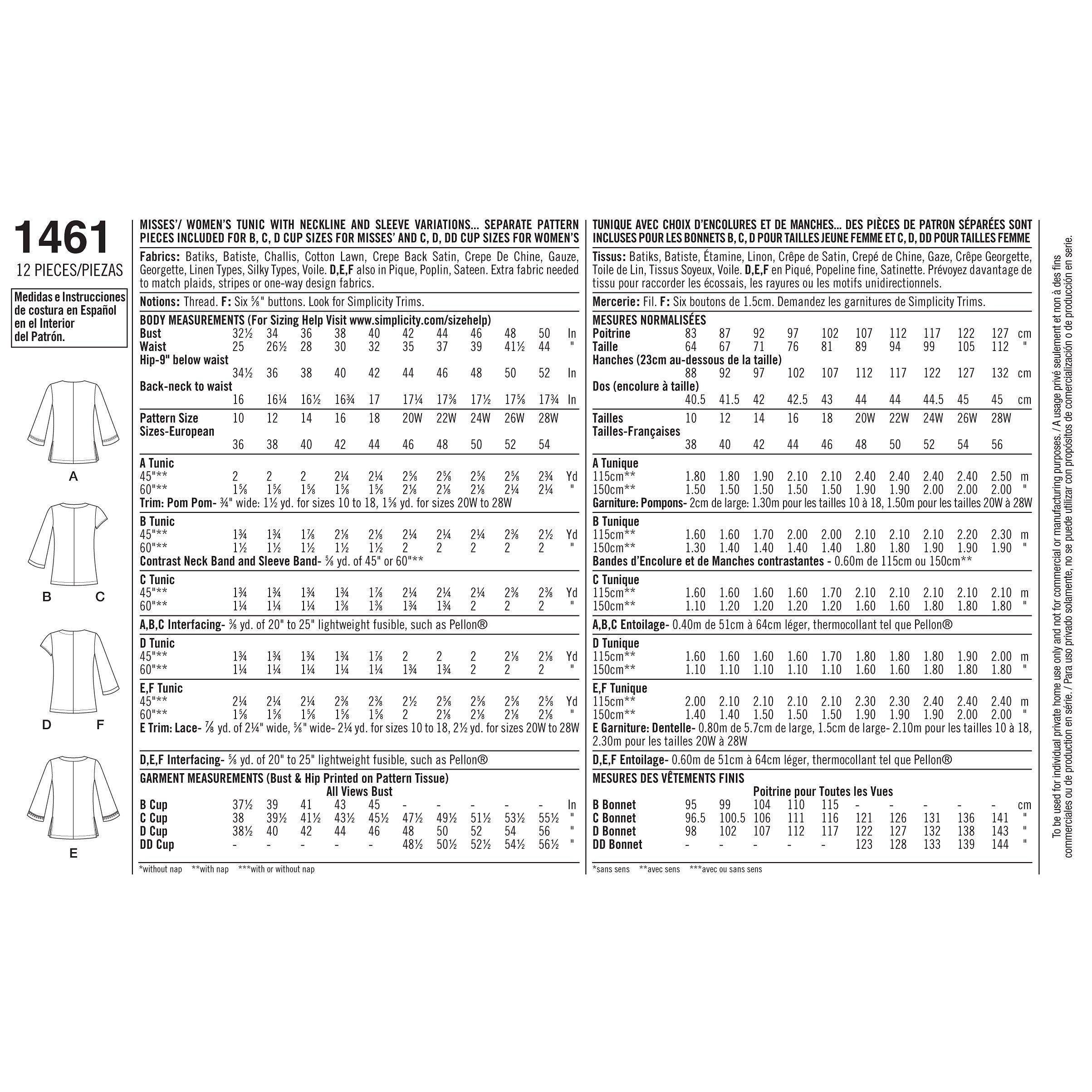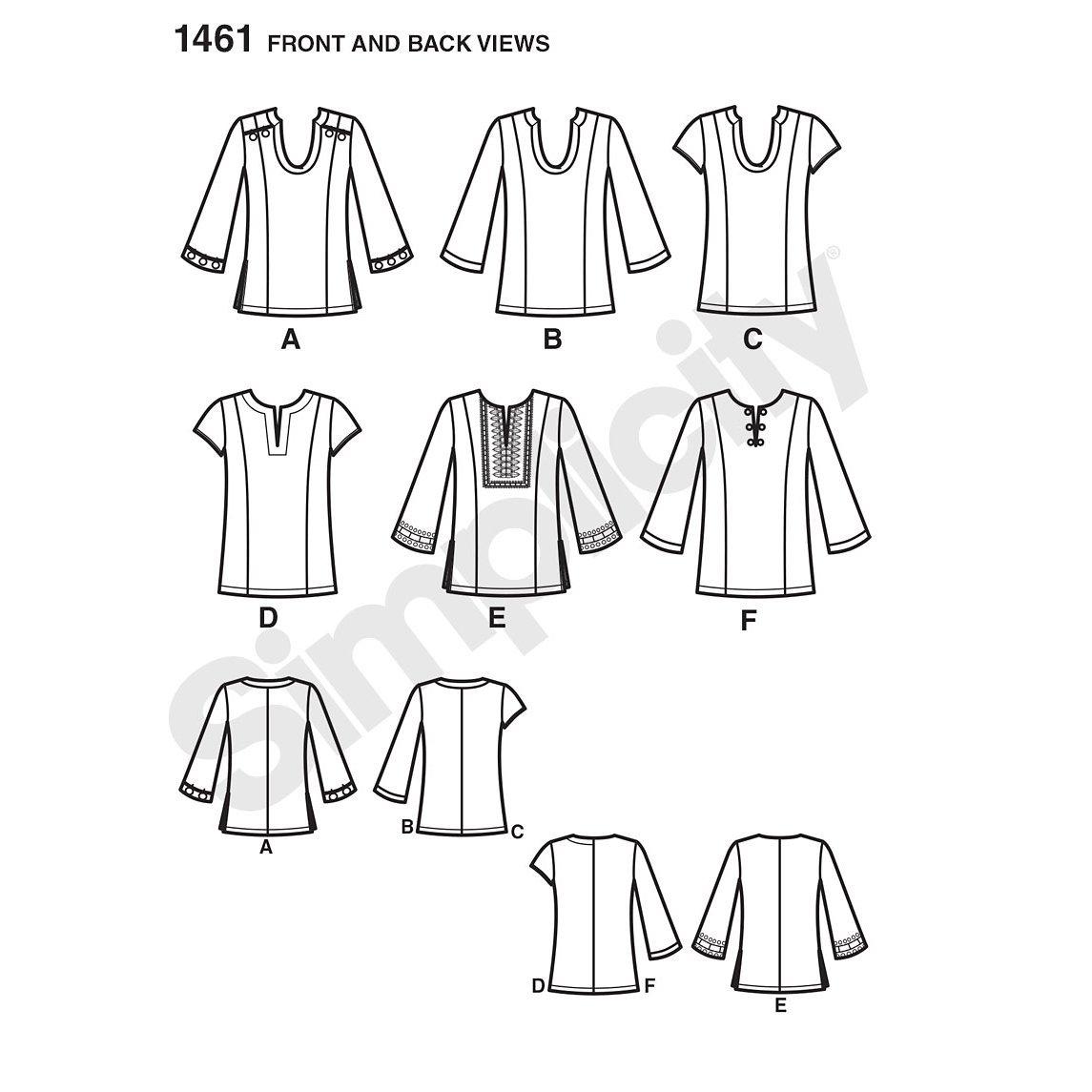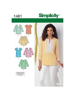 For creating fuss-free tunics, this Simplicity sewing pattern is easy to master. In regular and plus size variations, the tops come in a variety of sleeve lengths with a stylish notched round neckline.