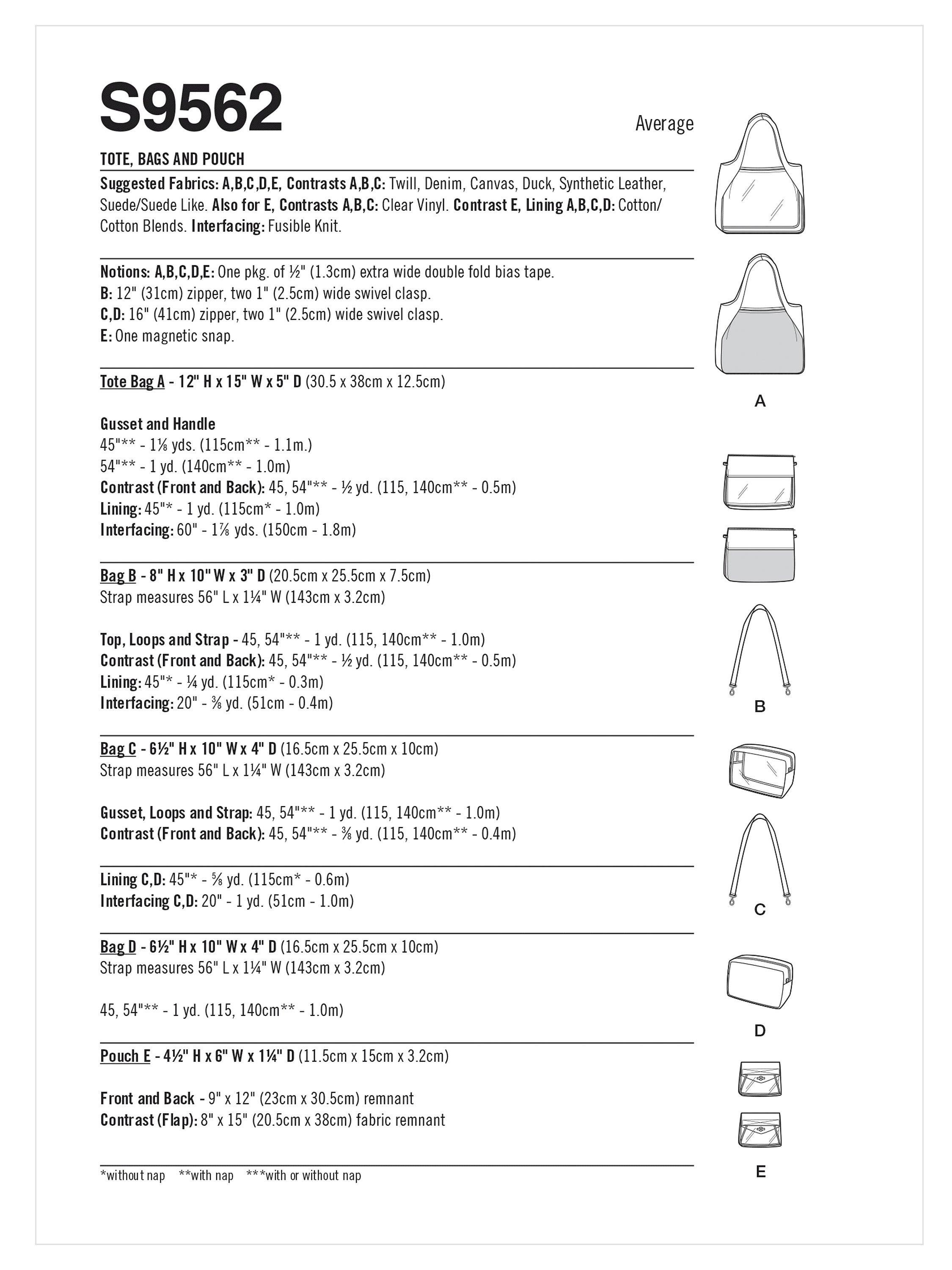 SimplicityTote Bags and Pouch Sewing Pattern, S9562OS