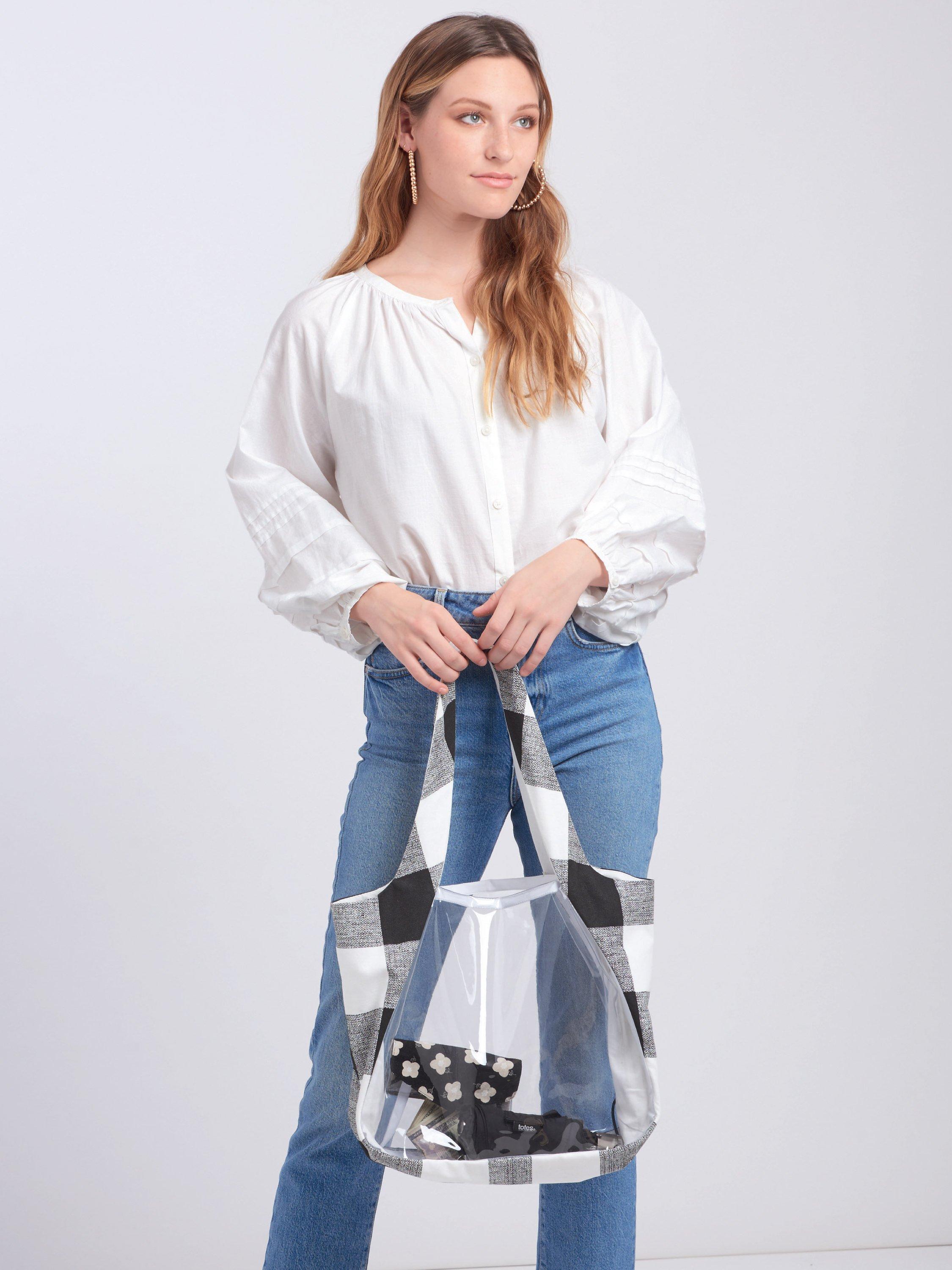 Casual, everyday tote, bags and pouch can be made in heavy-weight materials ord clear vinyl. (Clear accessories are great for security purposes).