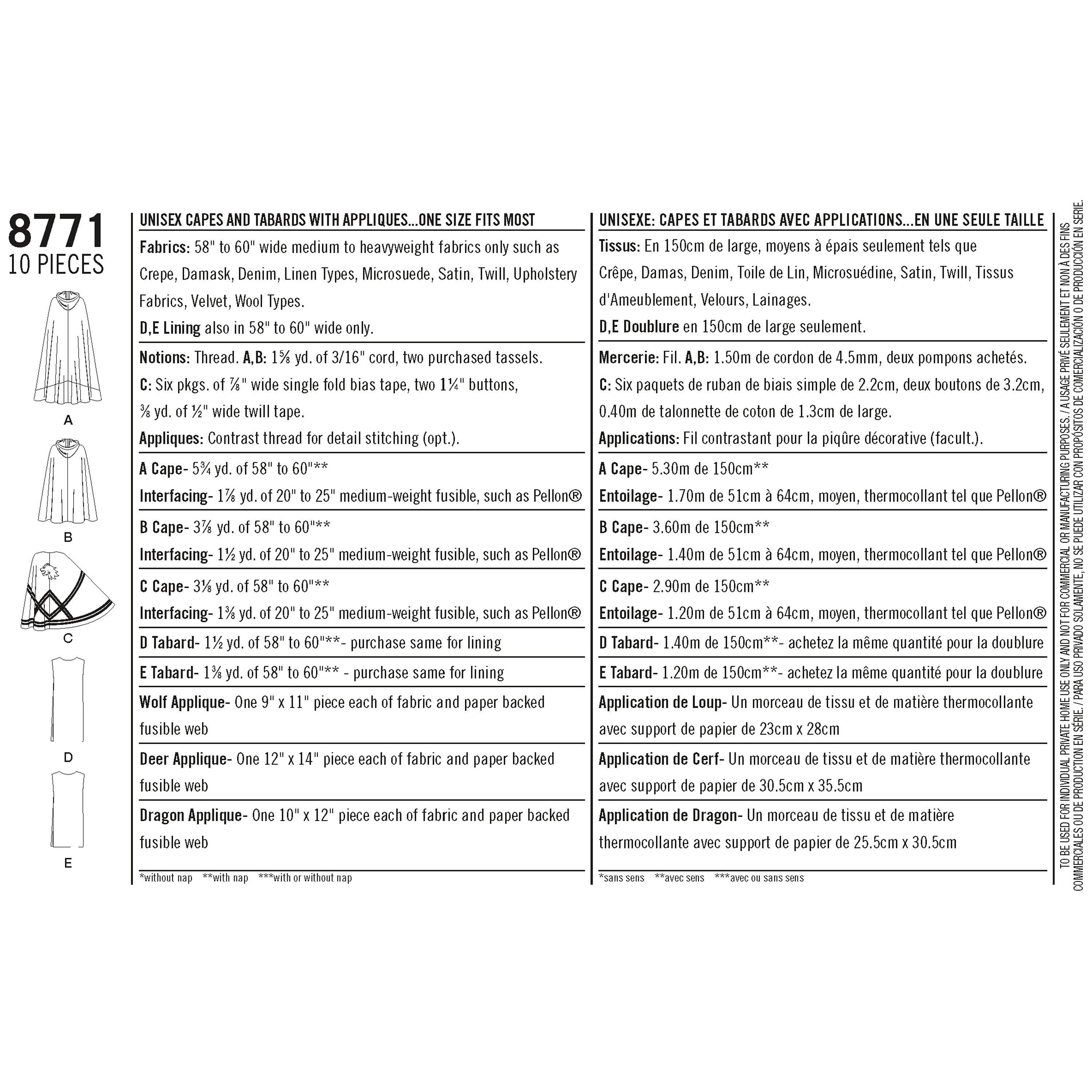 SimplicityUnisex Capes Sewing Pattern, 8771, One Size