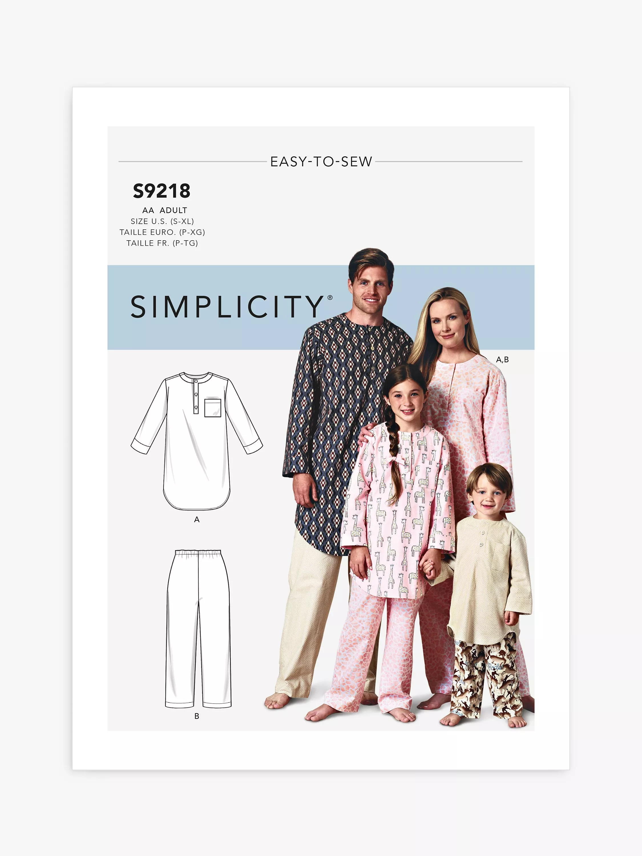 Lounge in style with loose-fitting pullover tunic with back pleat into yoke, forward shoulder seams and shaped hem plus pull-on pants. Sized for the whole family.