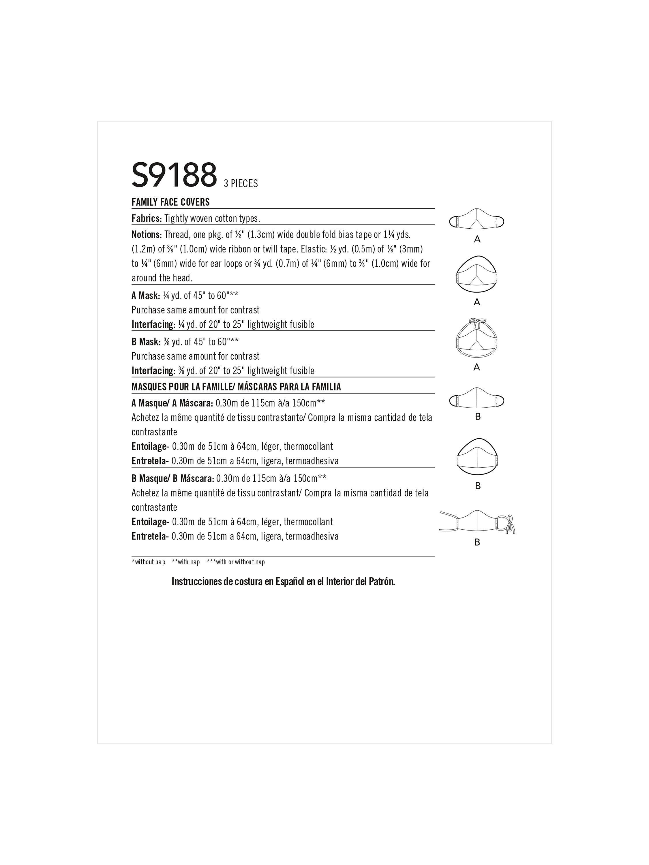 SimplicityUnisex Face Coverings Sewing Pattern, S9188A