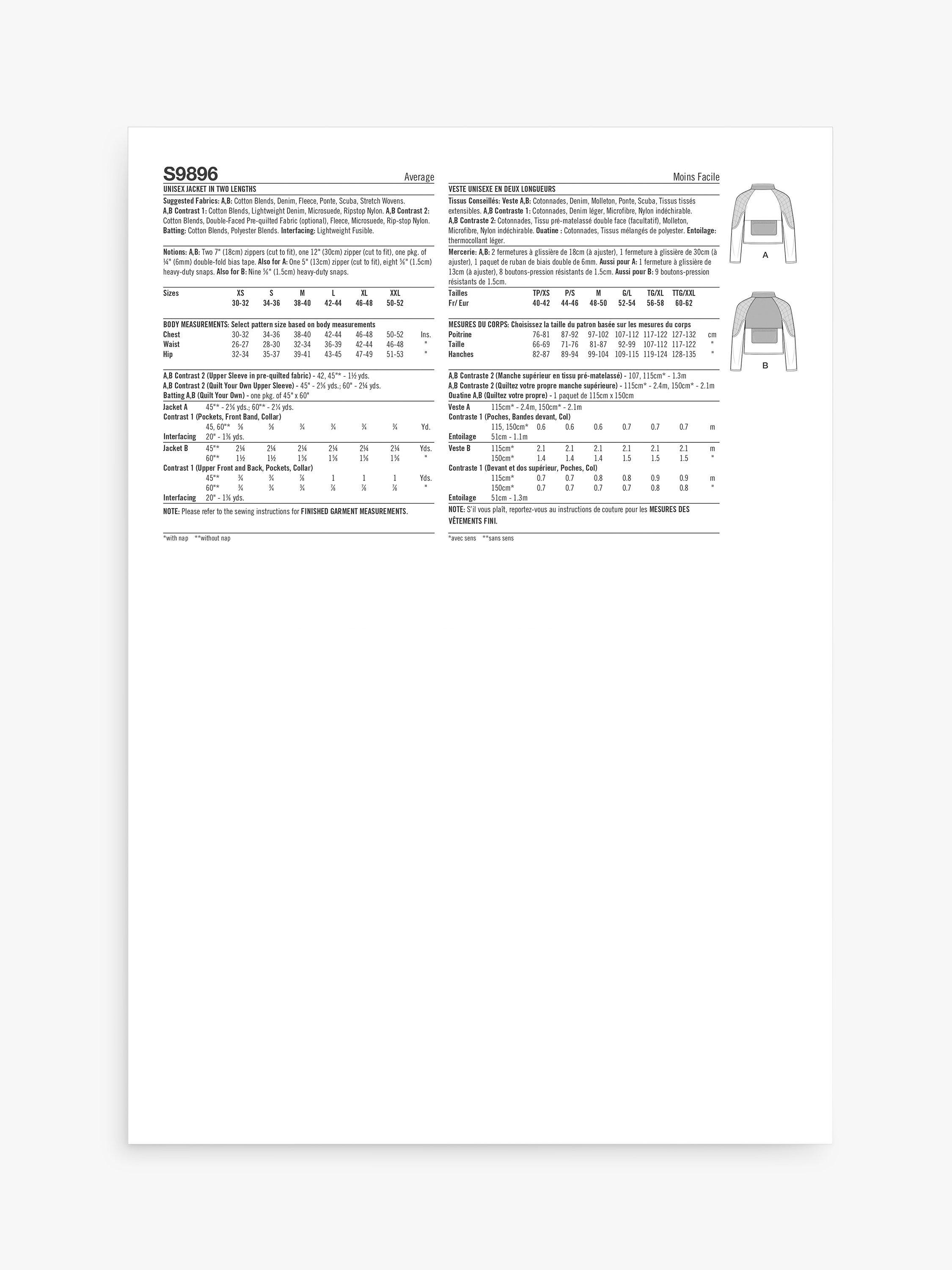 SimplicityUnisex Jacket Sewing Pattern, S9896