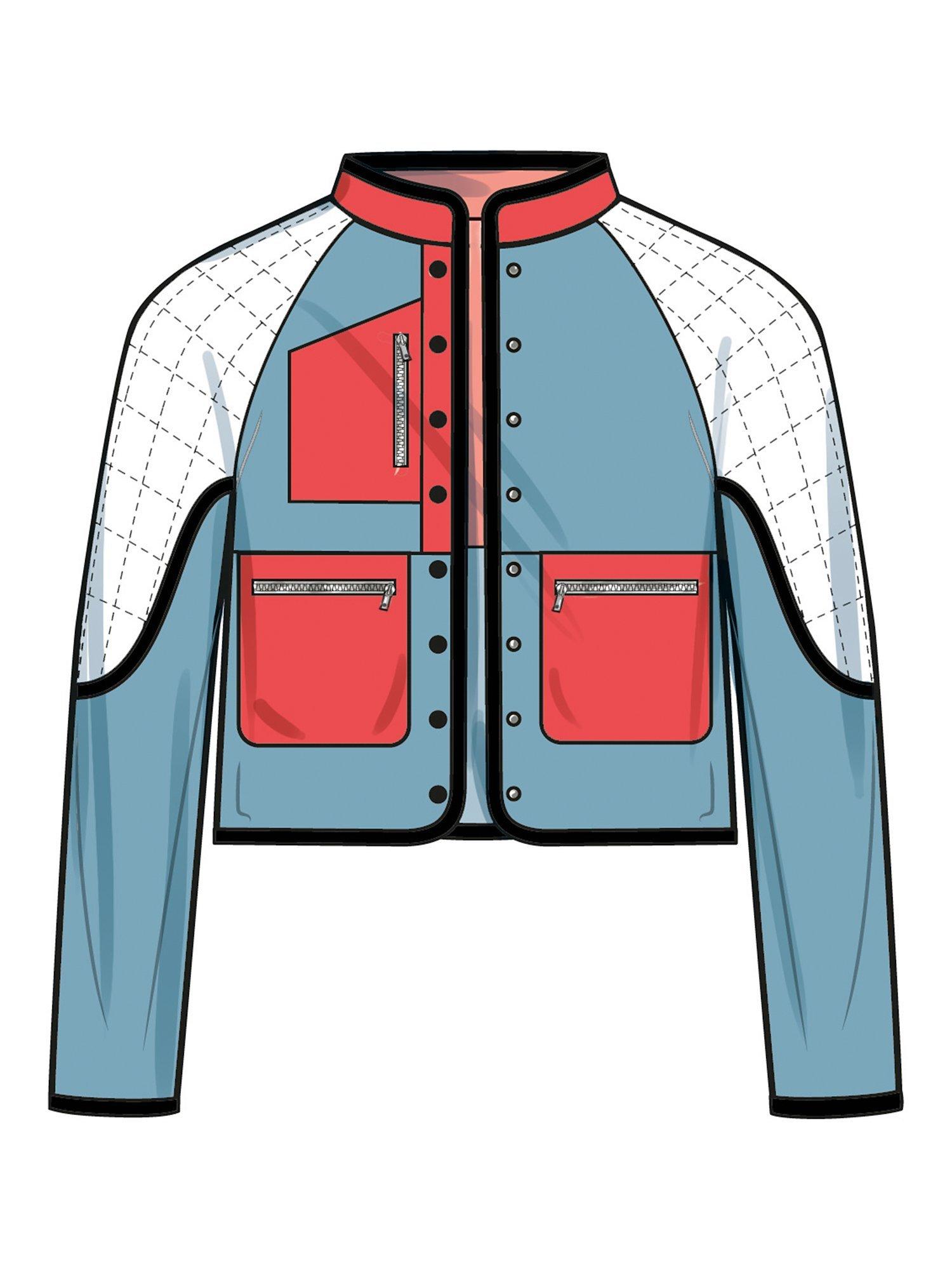 Back of jacket has a large zip pocket. View B has contrast fabric in front and back yokes.