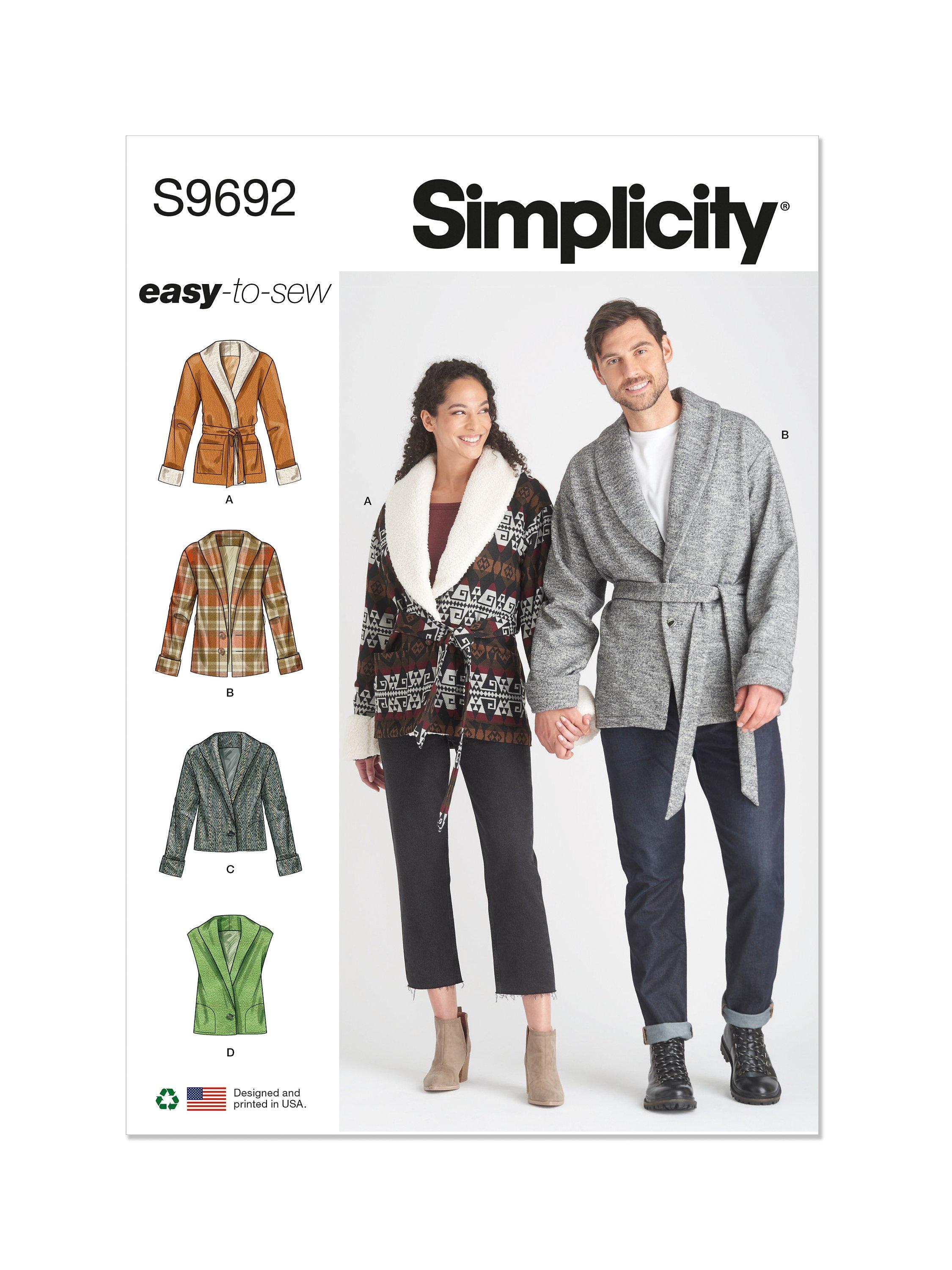 SimplicityUnisex Jacket, Vest and Belt Sewing Pattern, S9692A