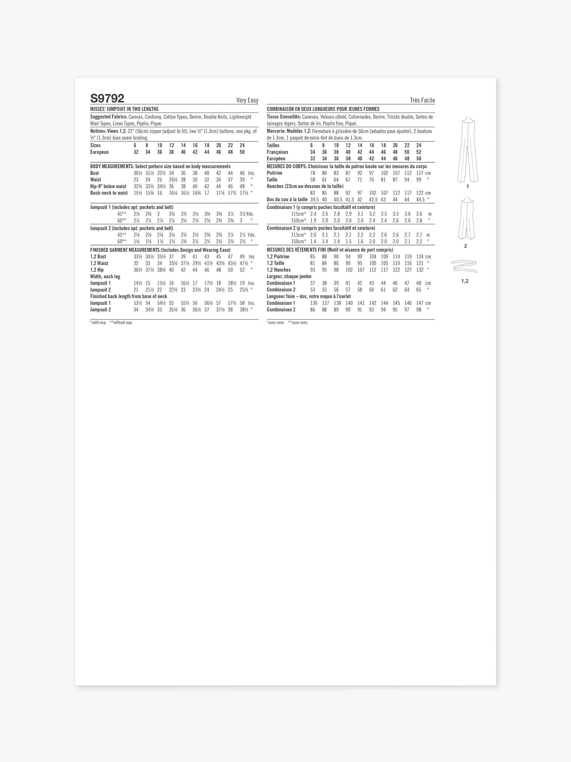 SimplicityVintage Misses' Jumpsuit Sewing Pattern, S9792, H5