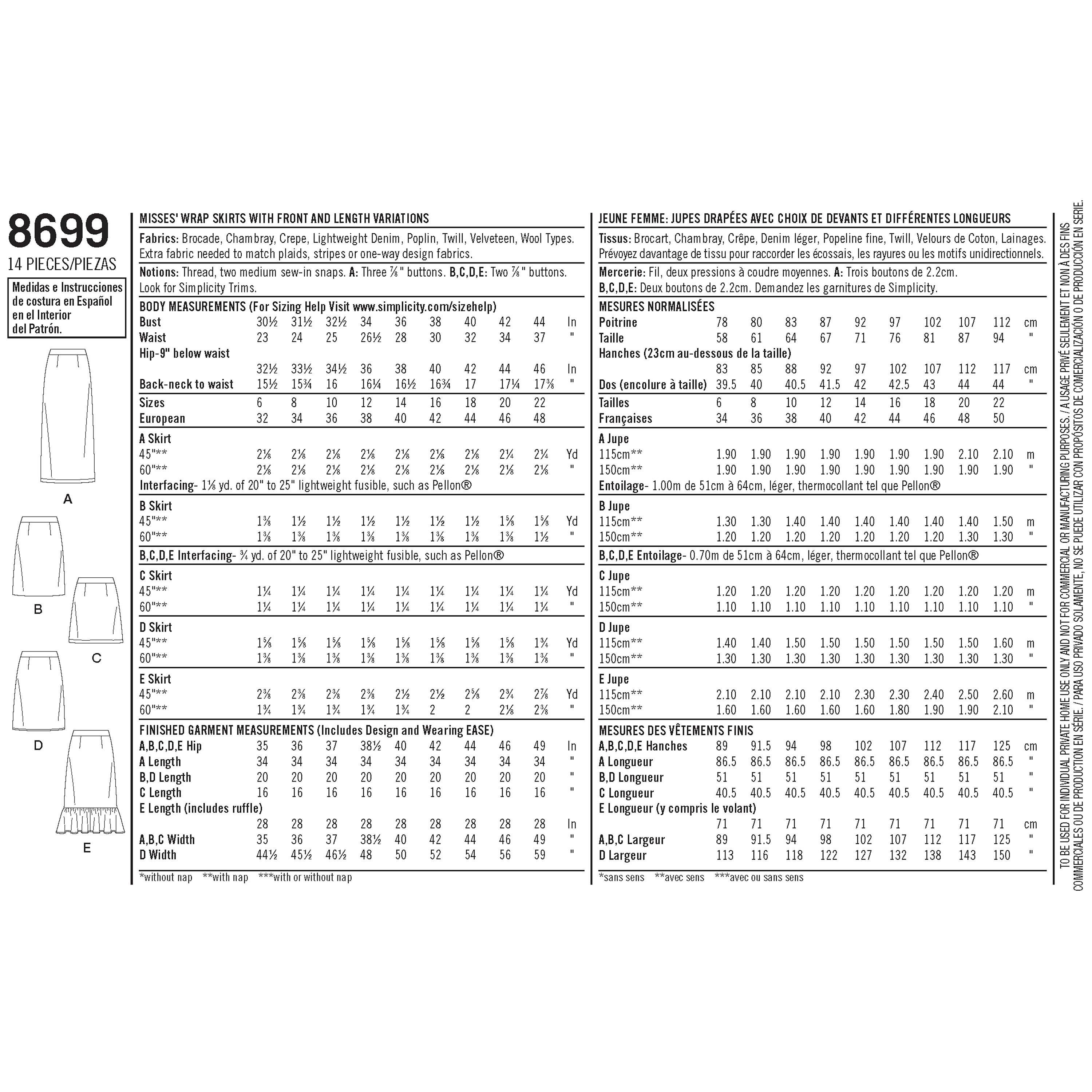 SimplicityVintage Skirts With Length Sewing Pattern, 8699