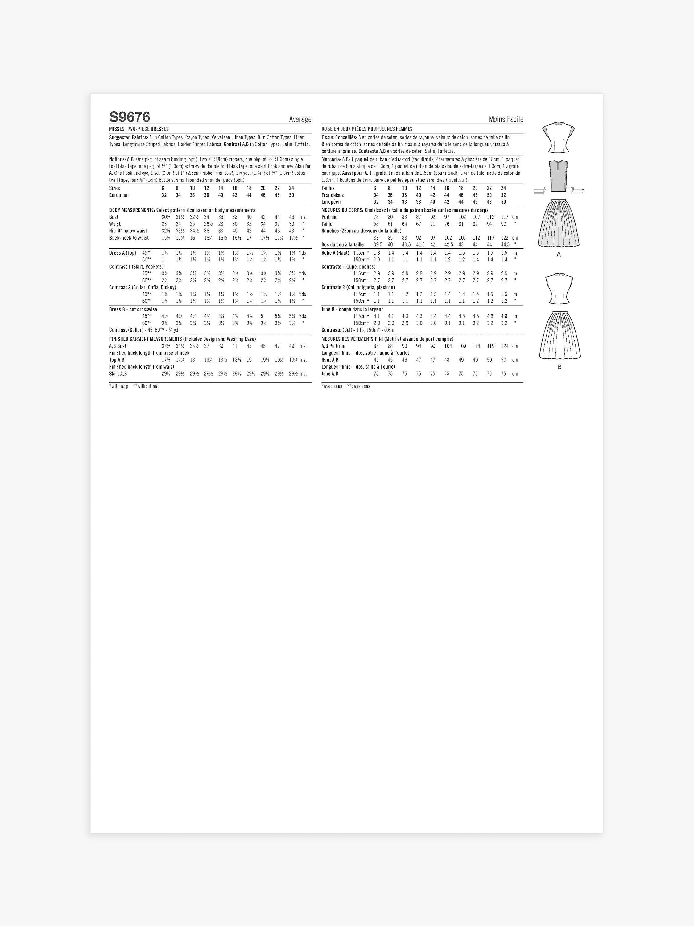 SimplicityVintage Two Piece Dresses Sewing Pattern, S9676