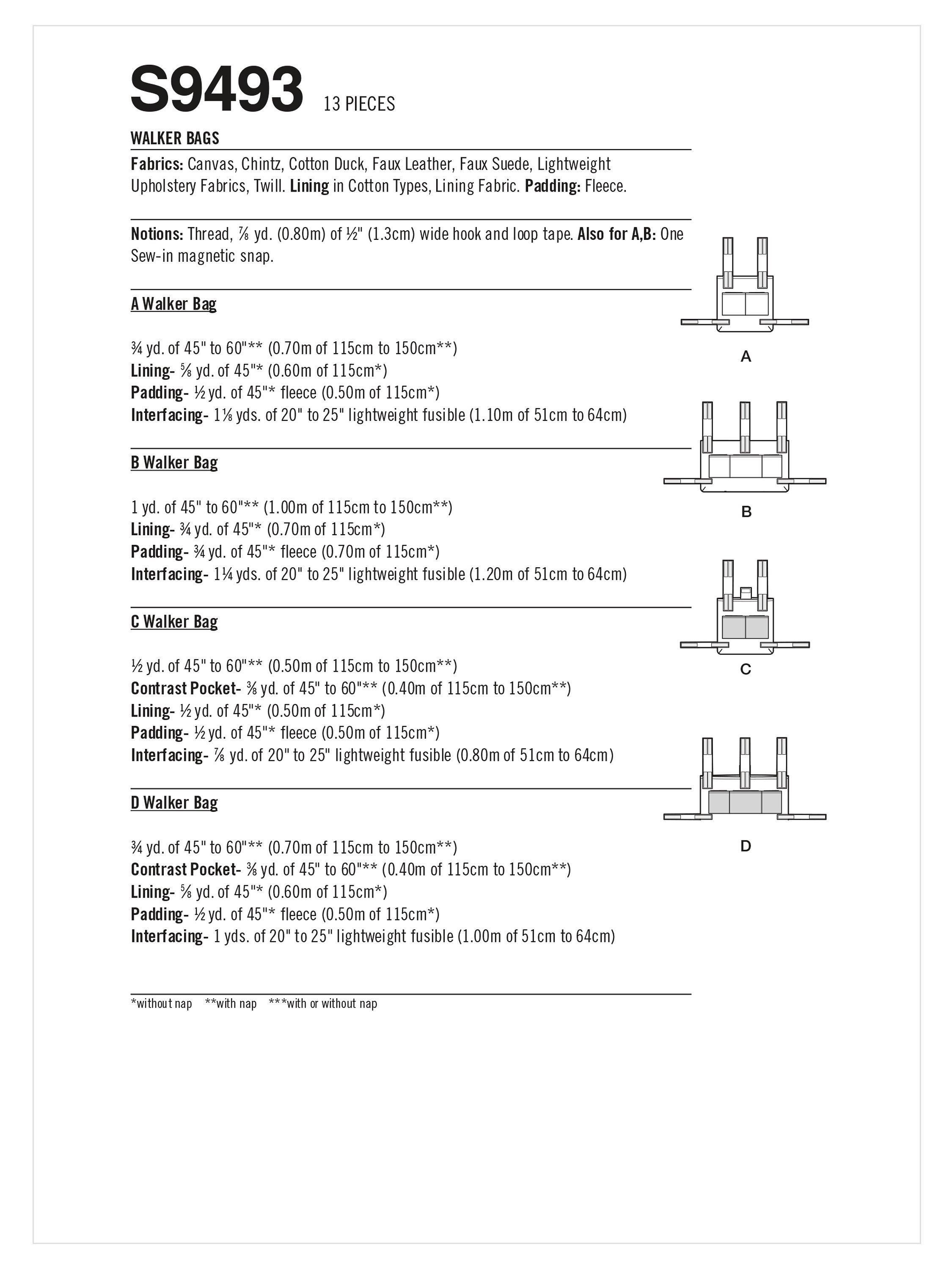 SimplicityWalking Frame Bags Sewing Pattern, S9493, OS