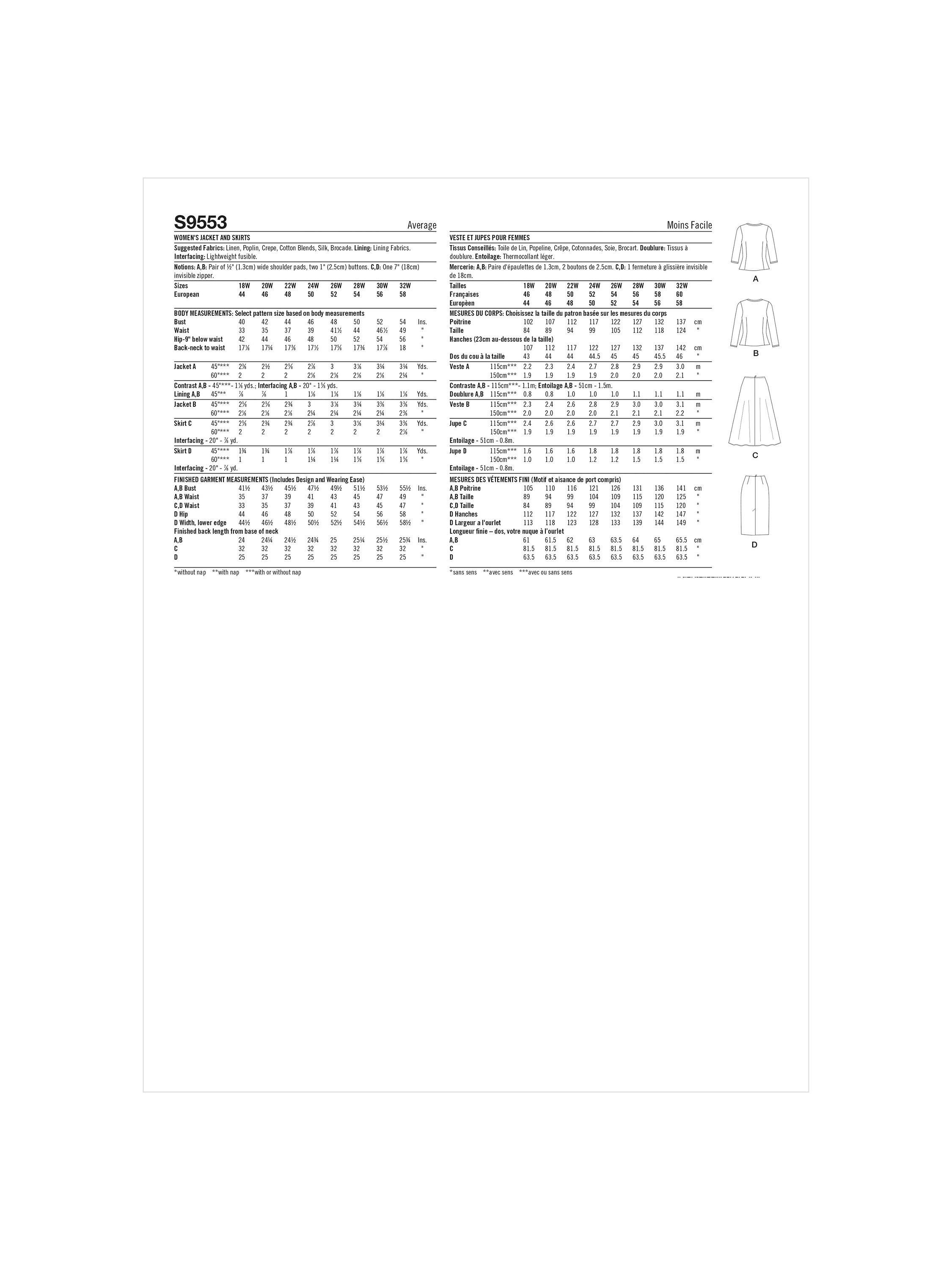 SimplicityWomen's Asymmetric Jacket and Skirts Sewing Pattern, S9553