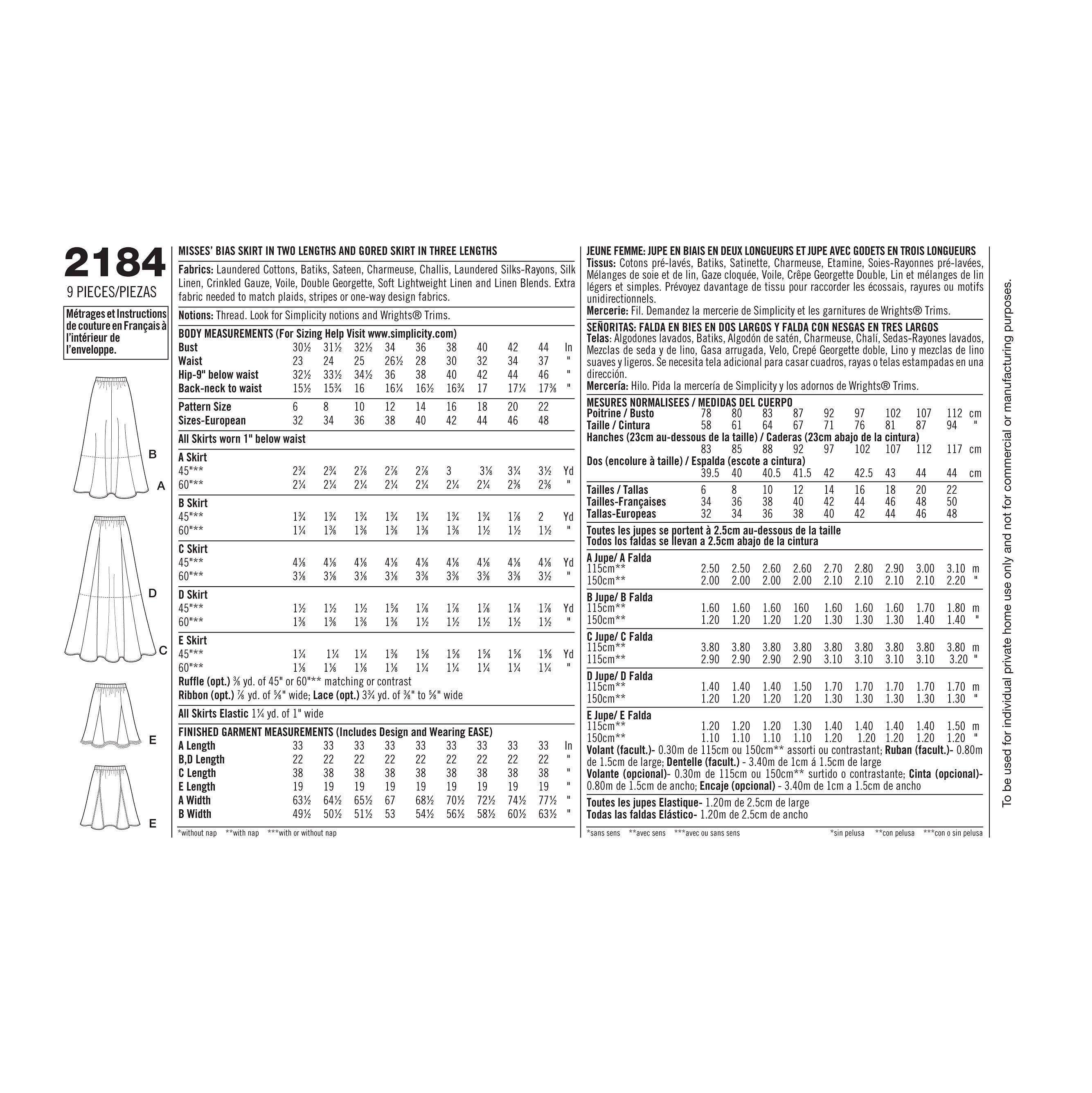 SimplicityWomens' Bias Skirts Sewing Pattern, 2184