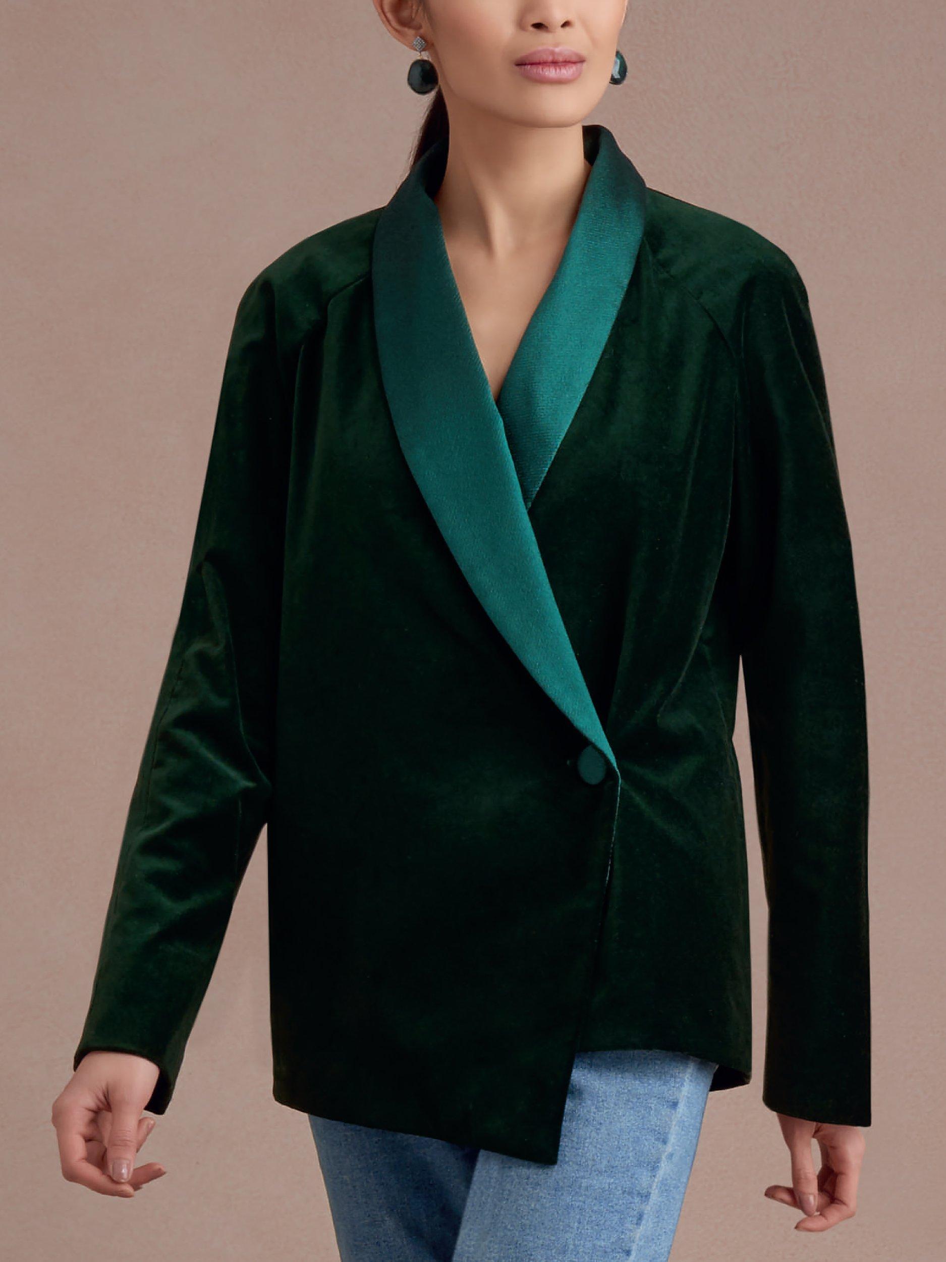 Suitable for woven fabrics or stable ponte knits, this pattern will show you how to sew a double-breasted or asymmetric button blazer with shawl or notched collar options plus front pocket options.