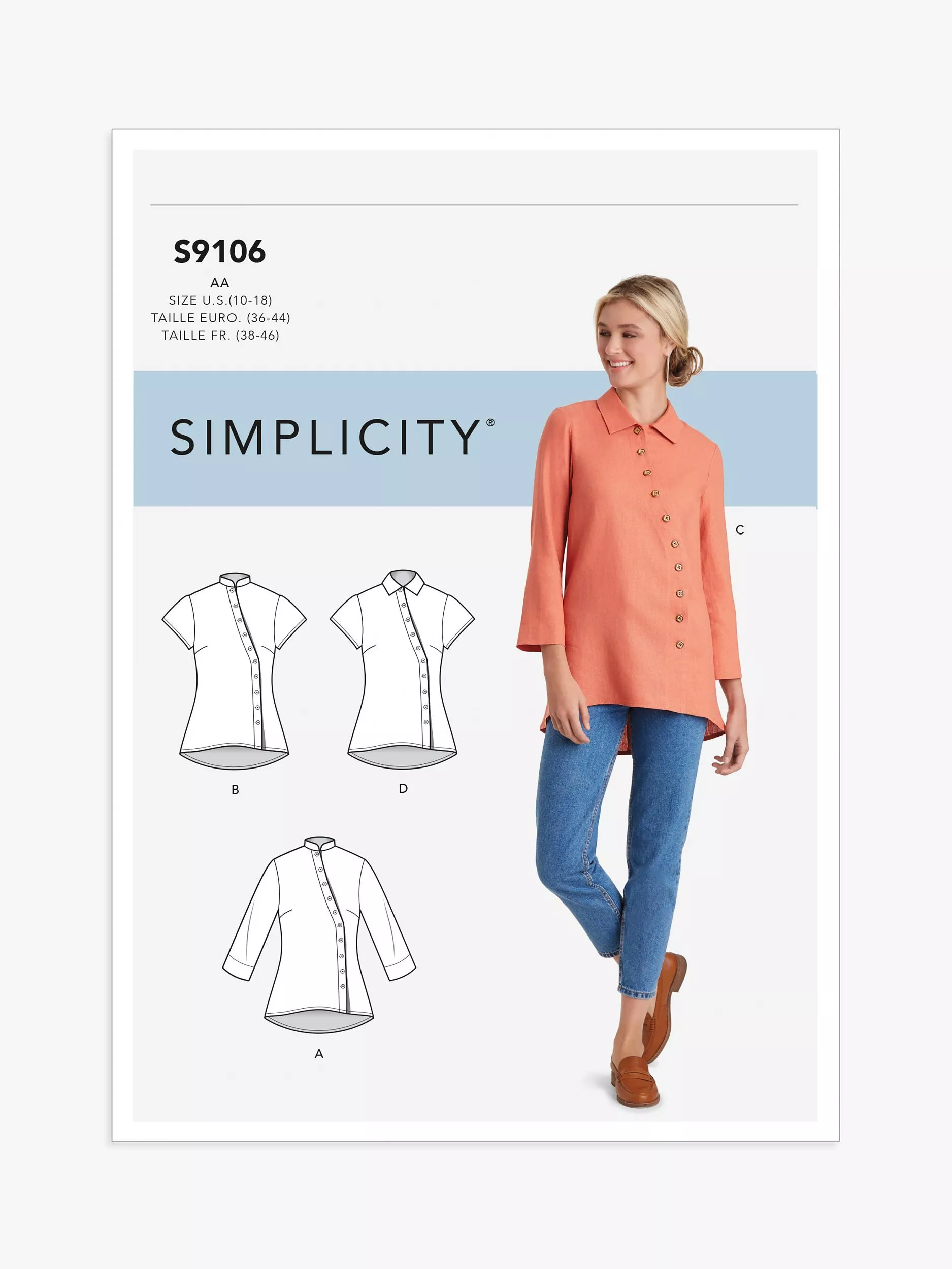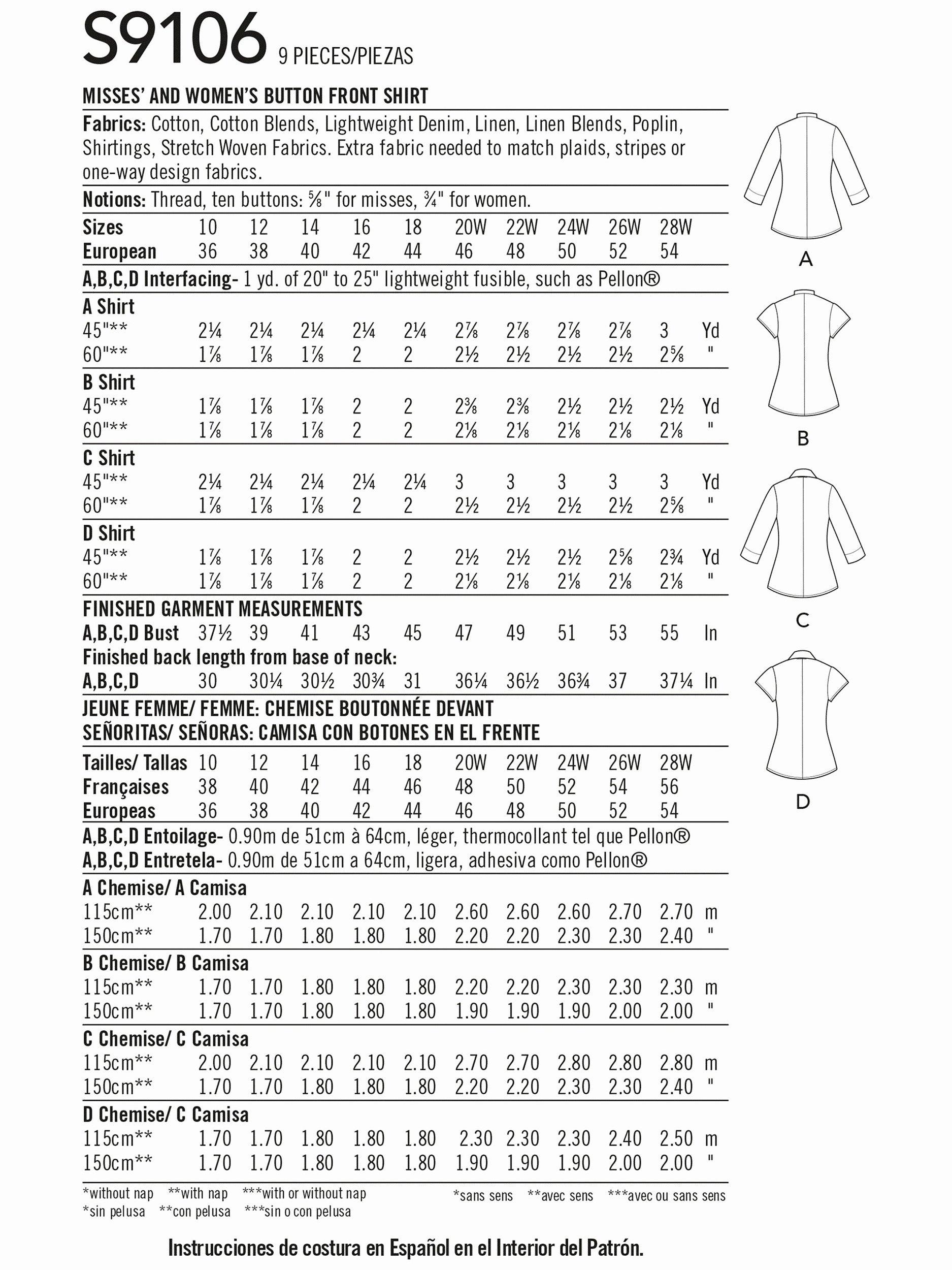 SimplicityWomen's Button Front Shirt Sewing Pattern, S9106AA