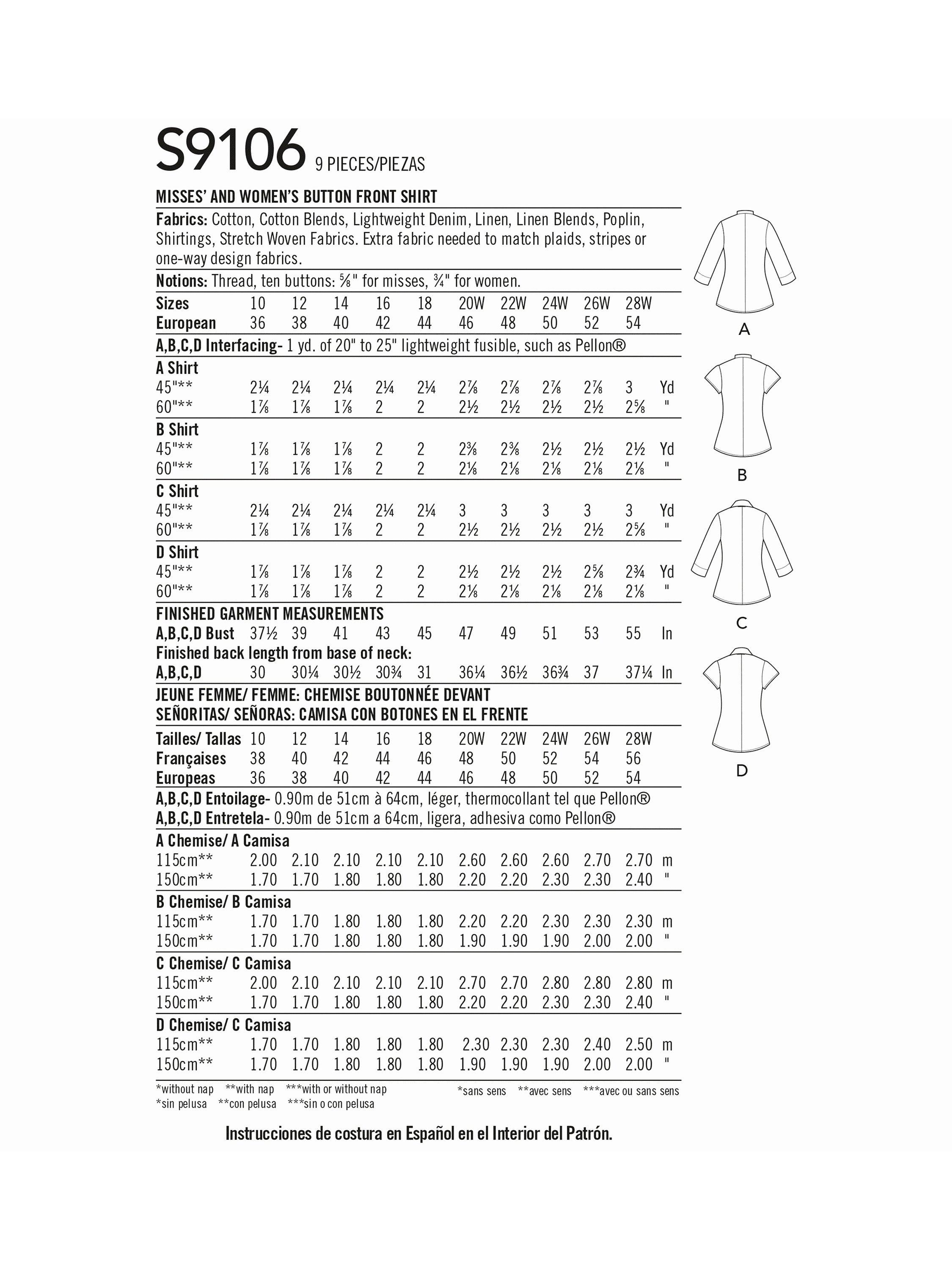 SimplicityWomen's Button Front Shirt Sewing Pattern, S9106BB
