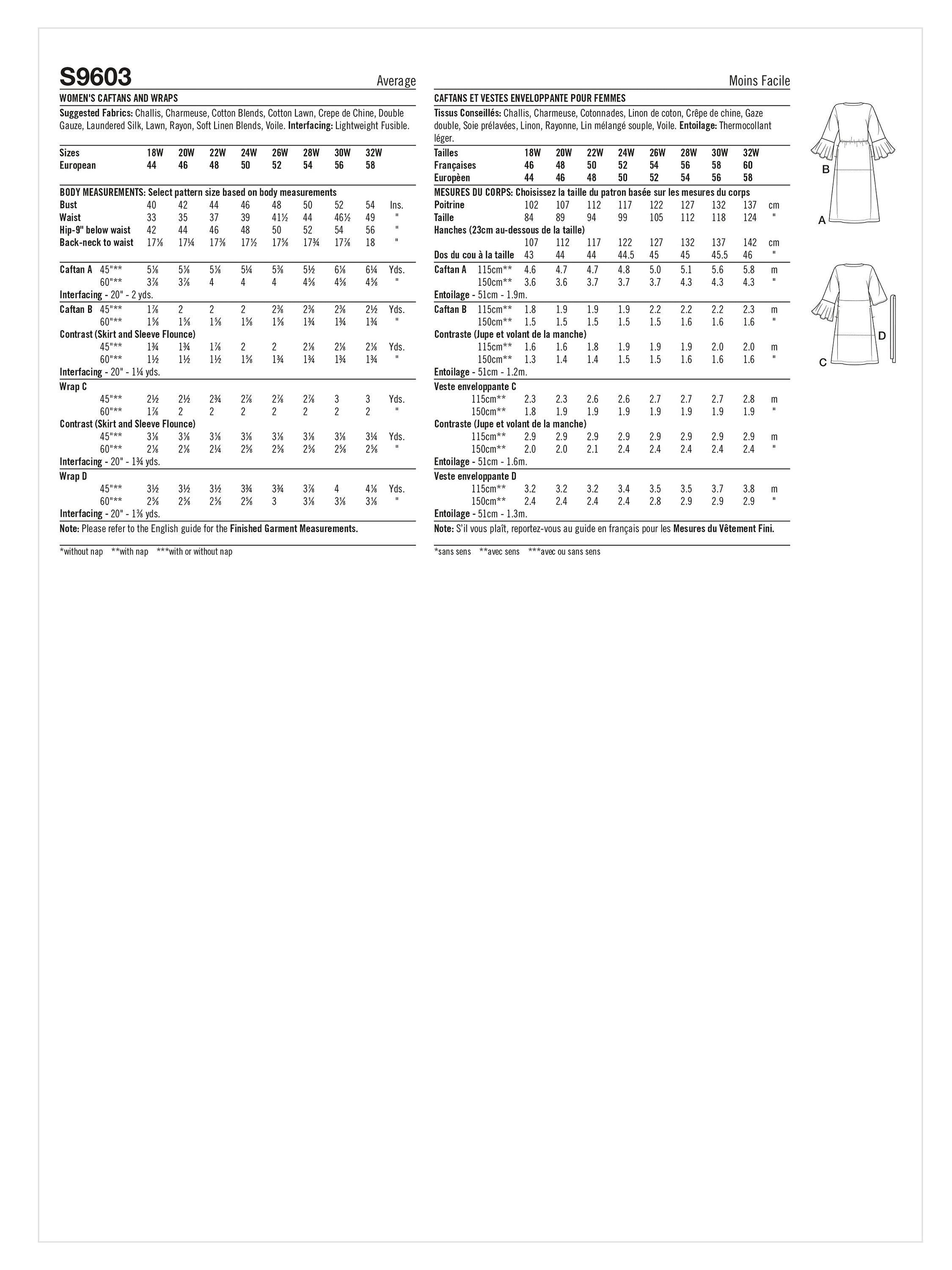 SimplicityWomen's Caftans and Wraps Sewing Pattern, S9603