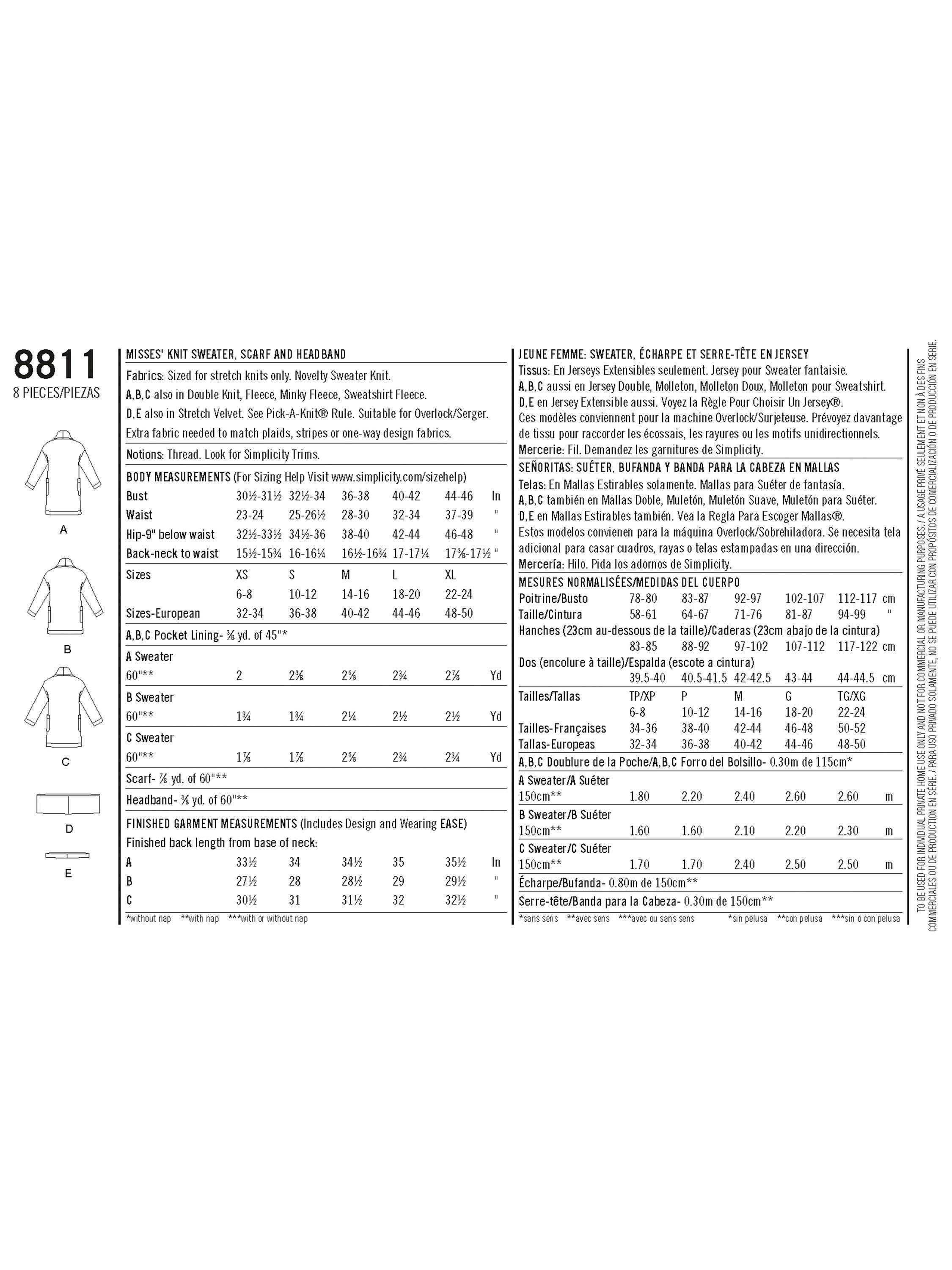 SimplicityWomen's Cardigans, Scarves and Headbands Sewing Pattern, 8811, A