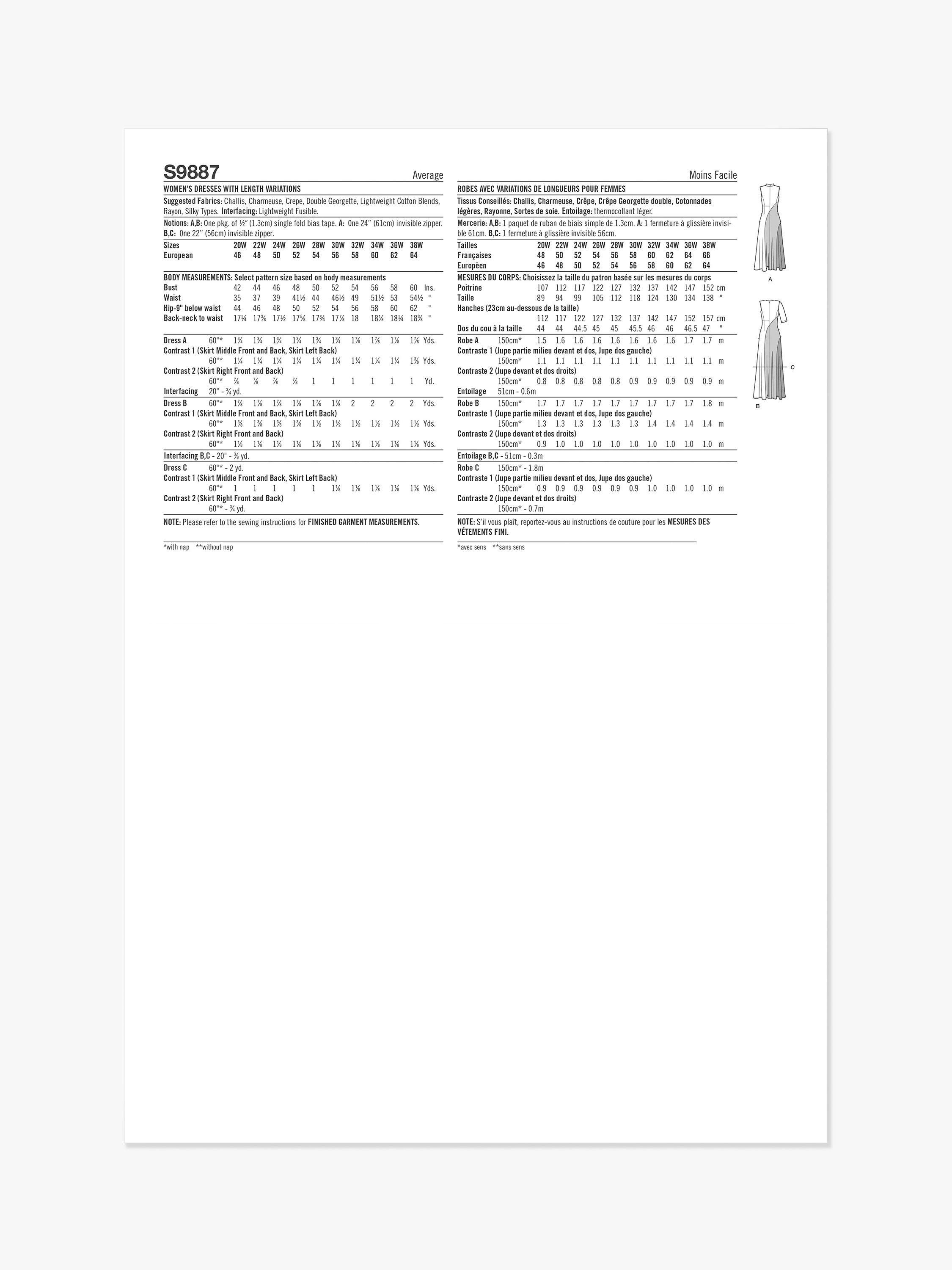 SimplicityWomen's Colour Block Dress Sewing Pattern, S9887