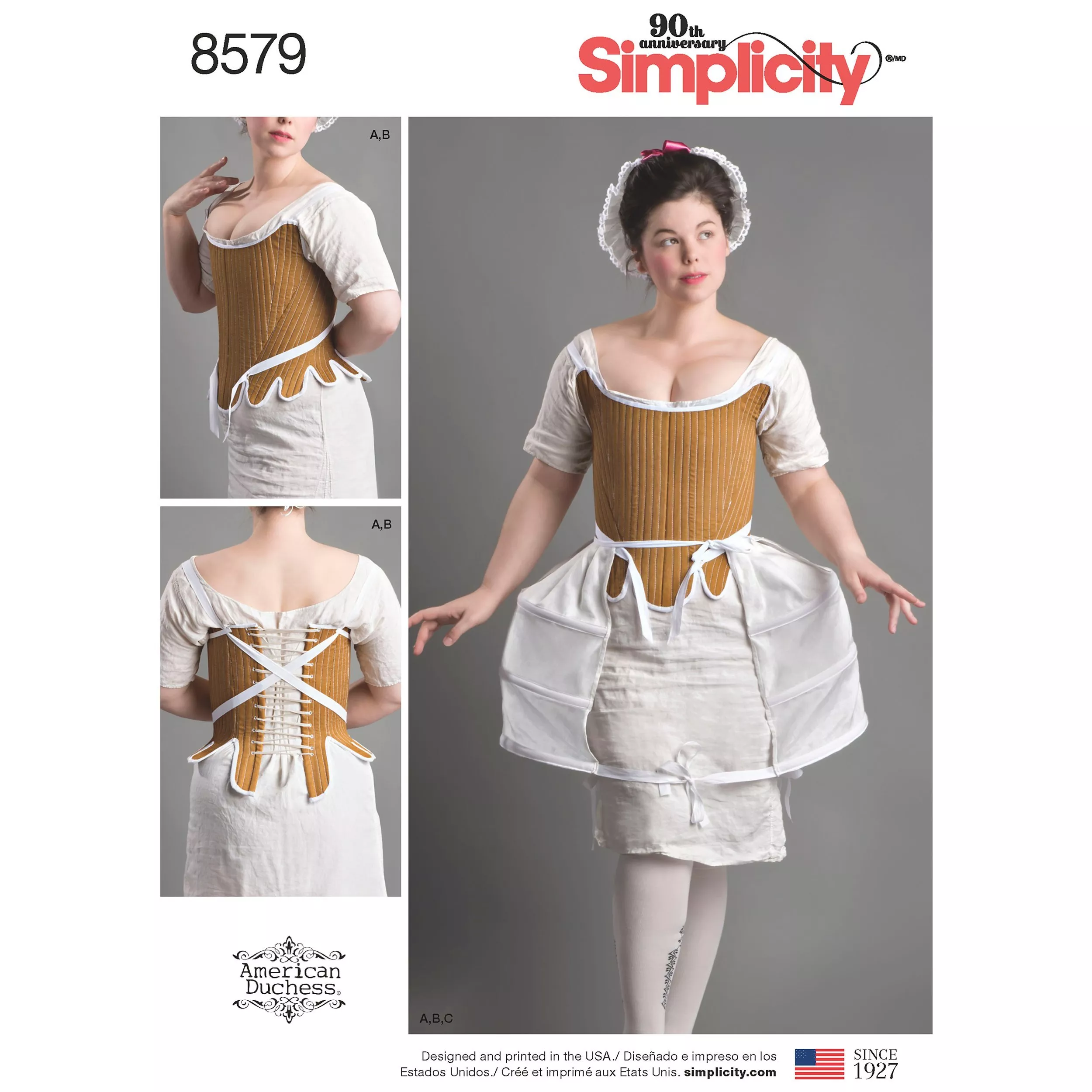 Following this pattern you can sew a corset, shift dress and panniers.