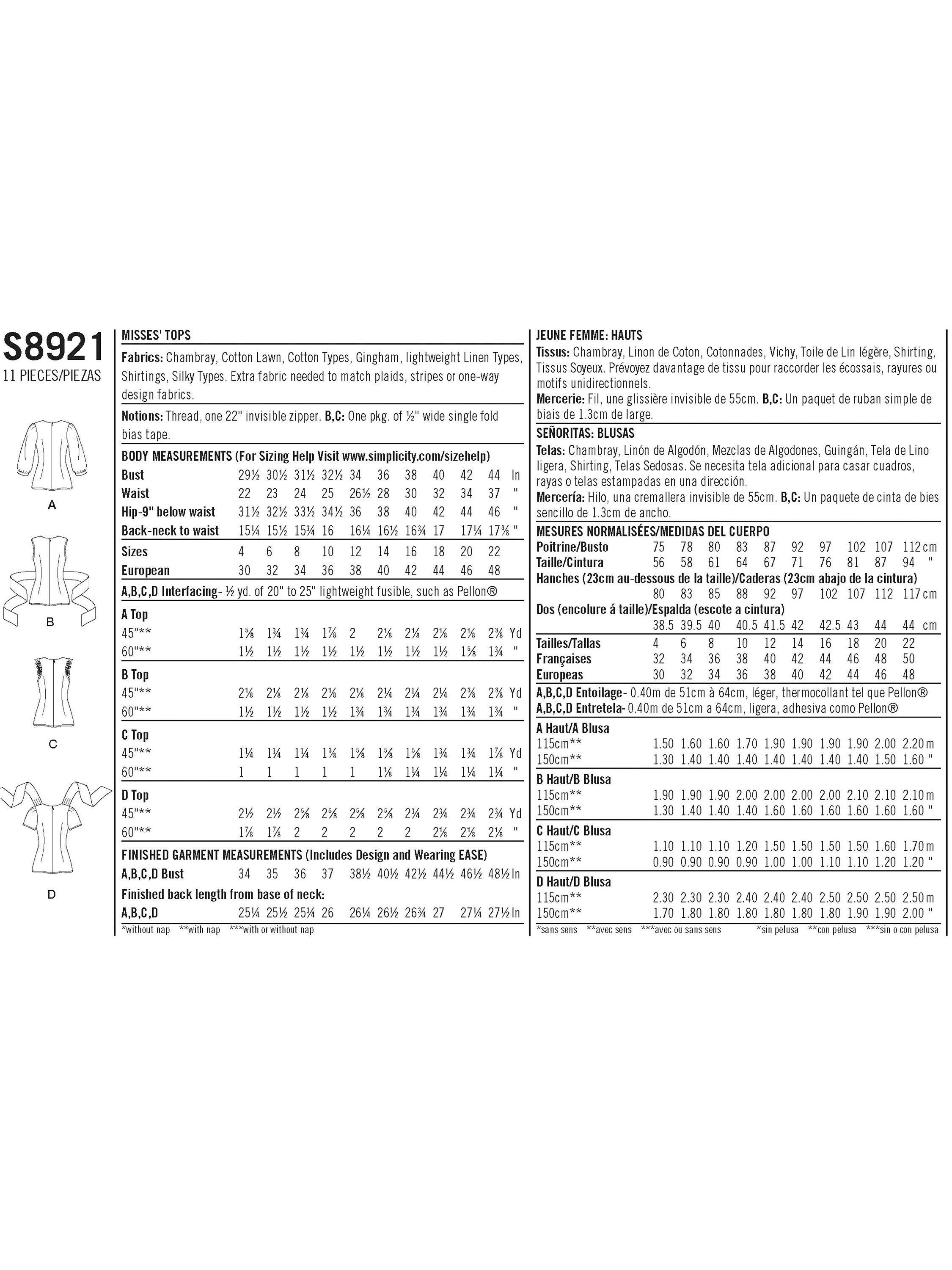 SimplicityWomen's Darted Top Sewing Pattern, 8921