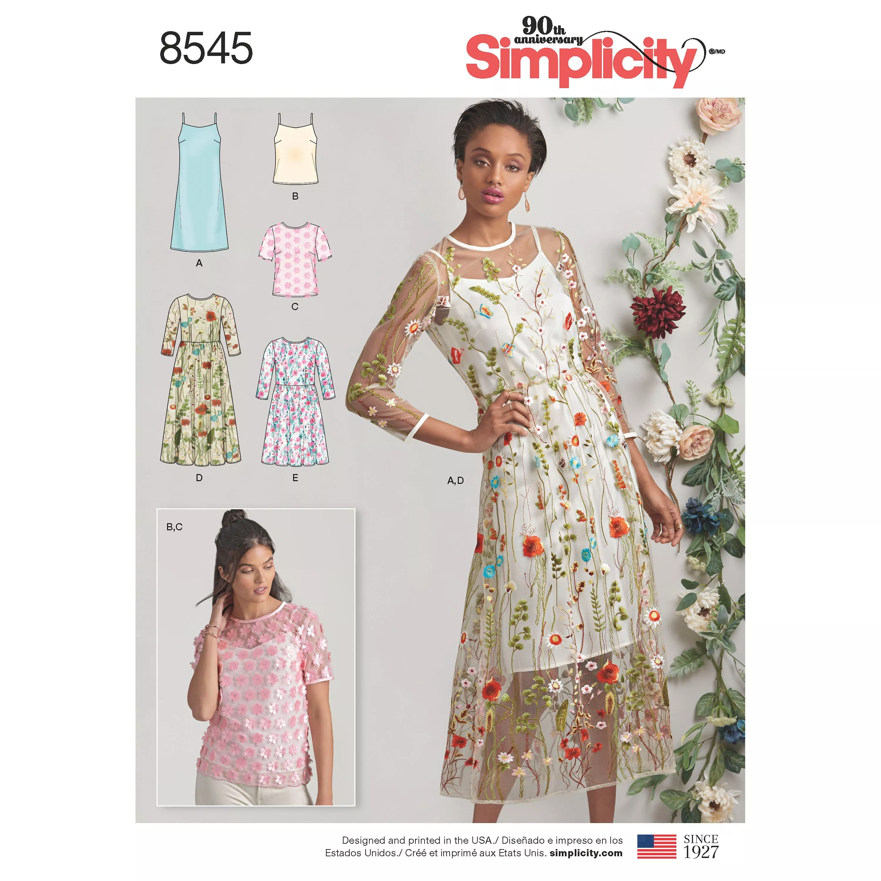 Create a stunning sheer dress, camisole, slip dress and T-Shirt with this pattern from Simplicity.