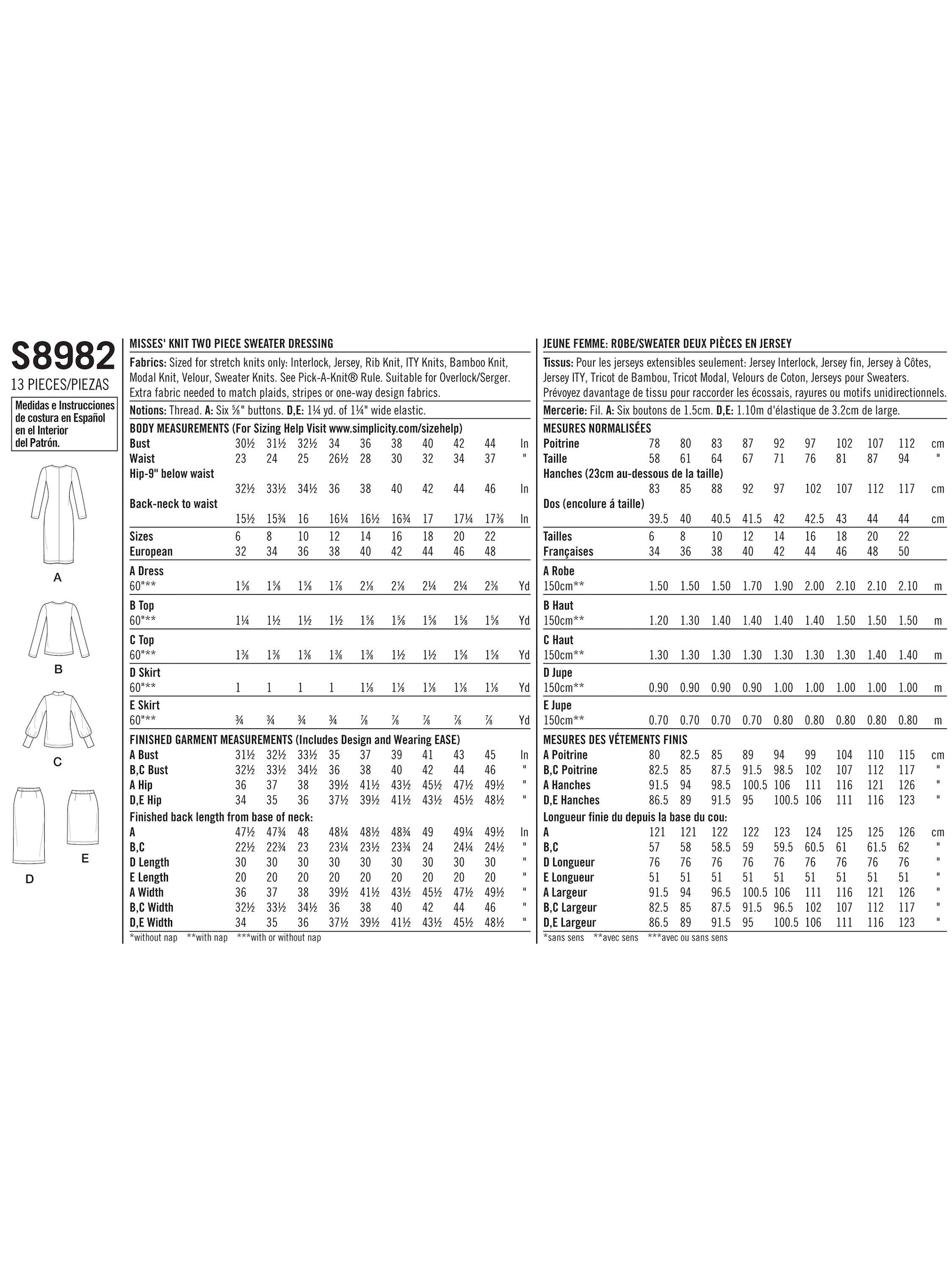 SimplicityWomen's Dress And Two-Piece Sewing Pattern, 8982