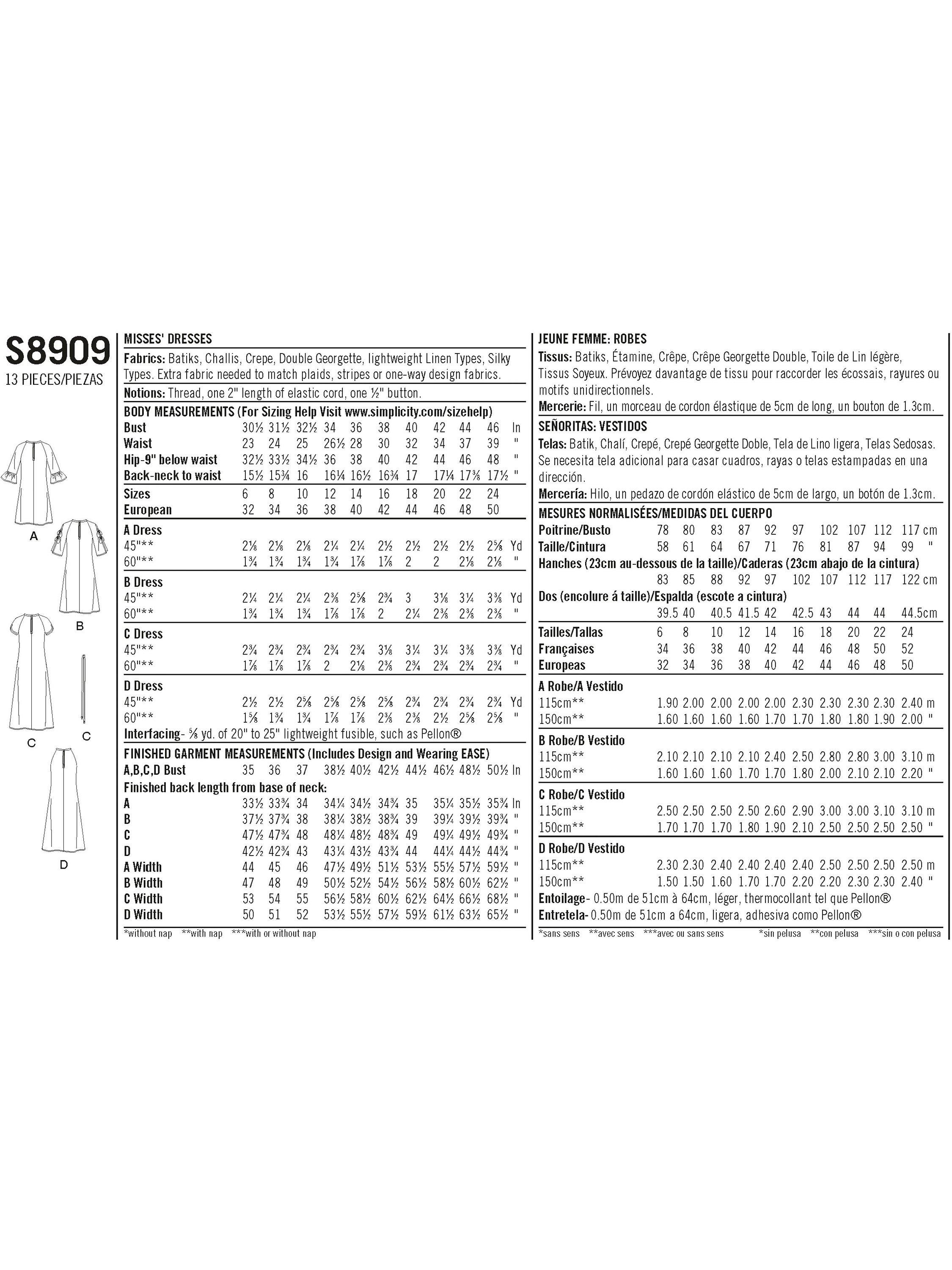 SimplicityWomen's Dress Sewing Pattern, 8909