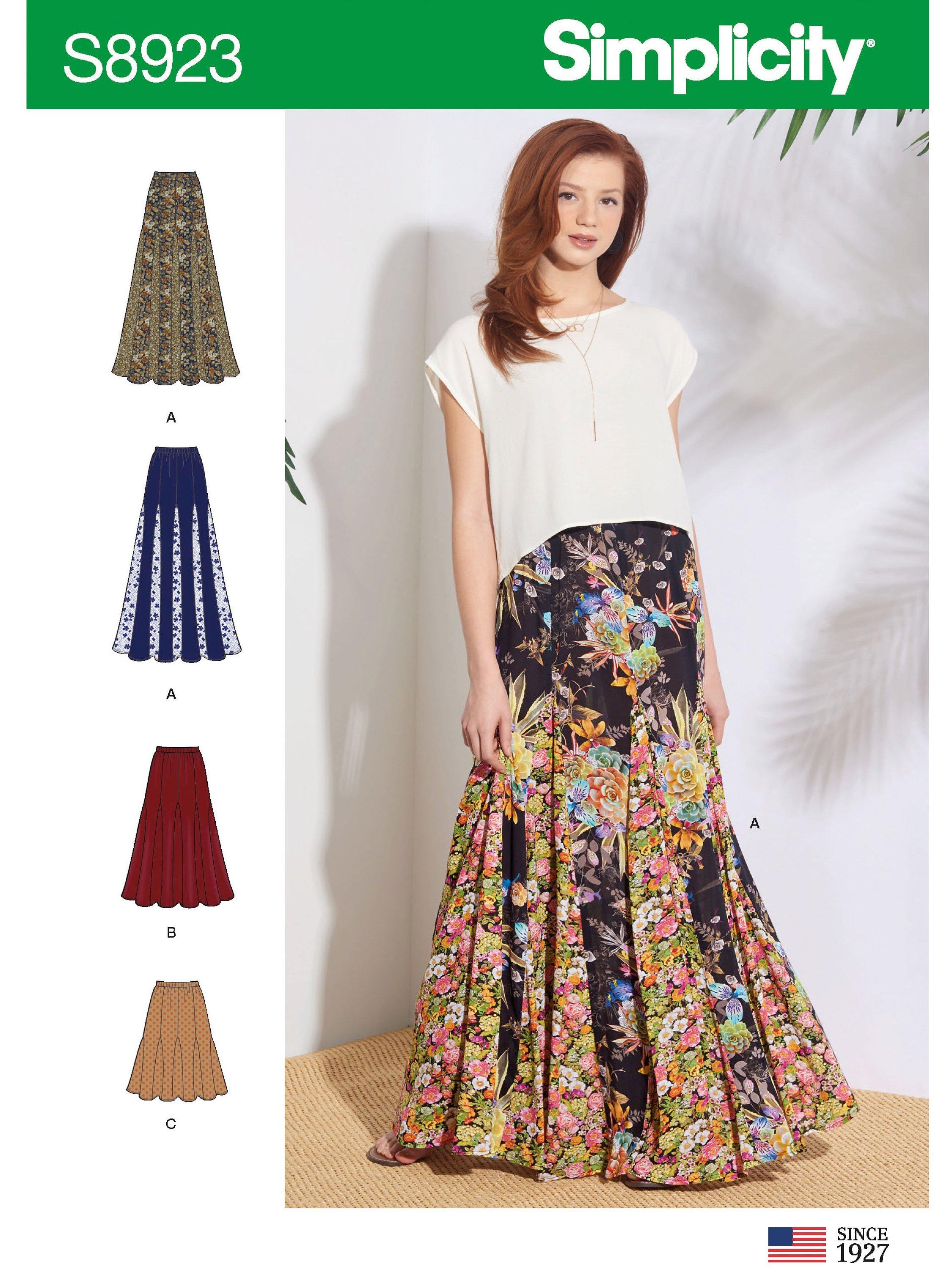 This Simplicity sewing pattern allows you to make a variety of different skirts. In a pull-on silhouette with a comfortable elasticated waist, they have an added godet to provide fullness to the short, midi or maxi length style.