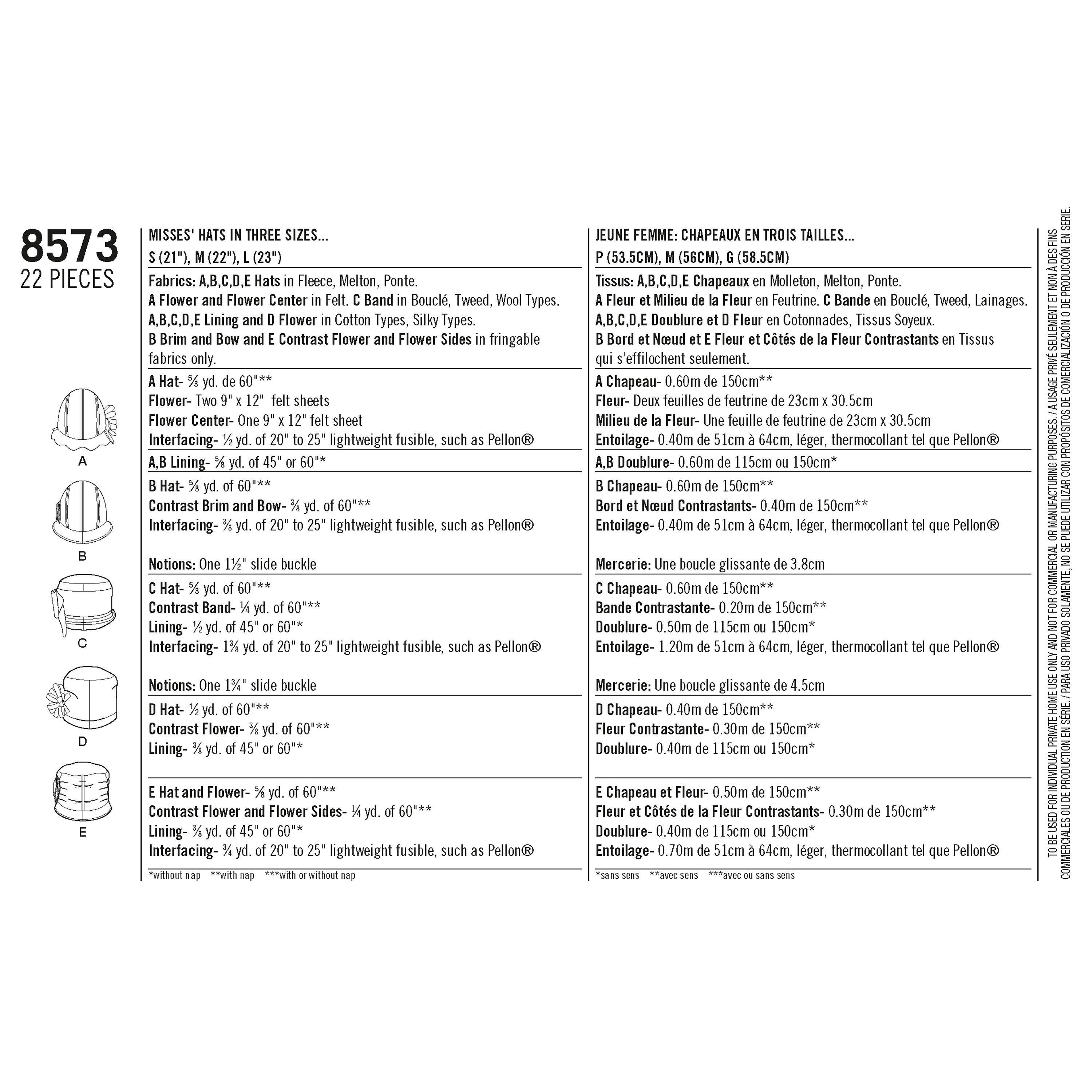 SimplicityWomen's Hat Sewing Pattern, 8573