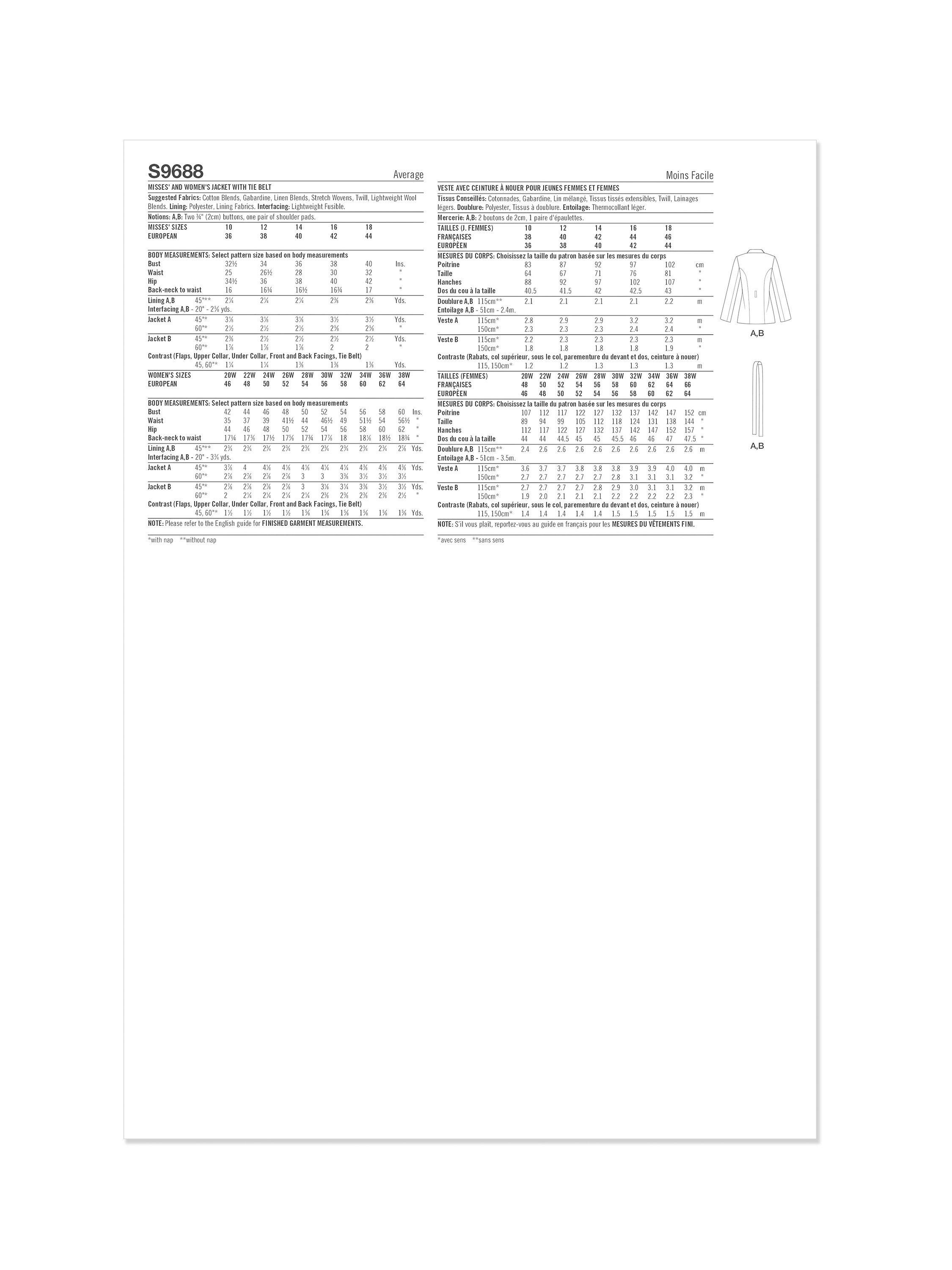 SimplicityWomen's Jacket with Tie Belt Sewing Pattern, S9688