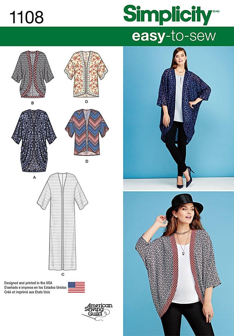 SimplicityWomen's Kimonos Sewing Pattern, 1108
