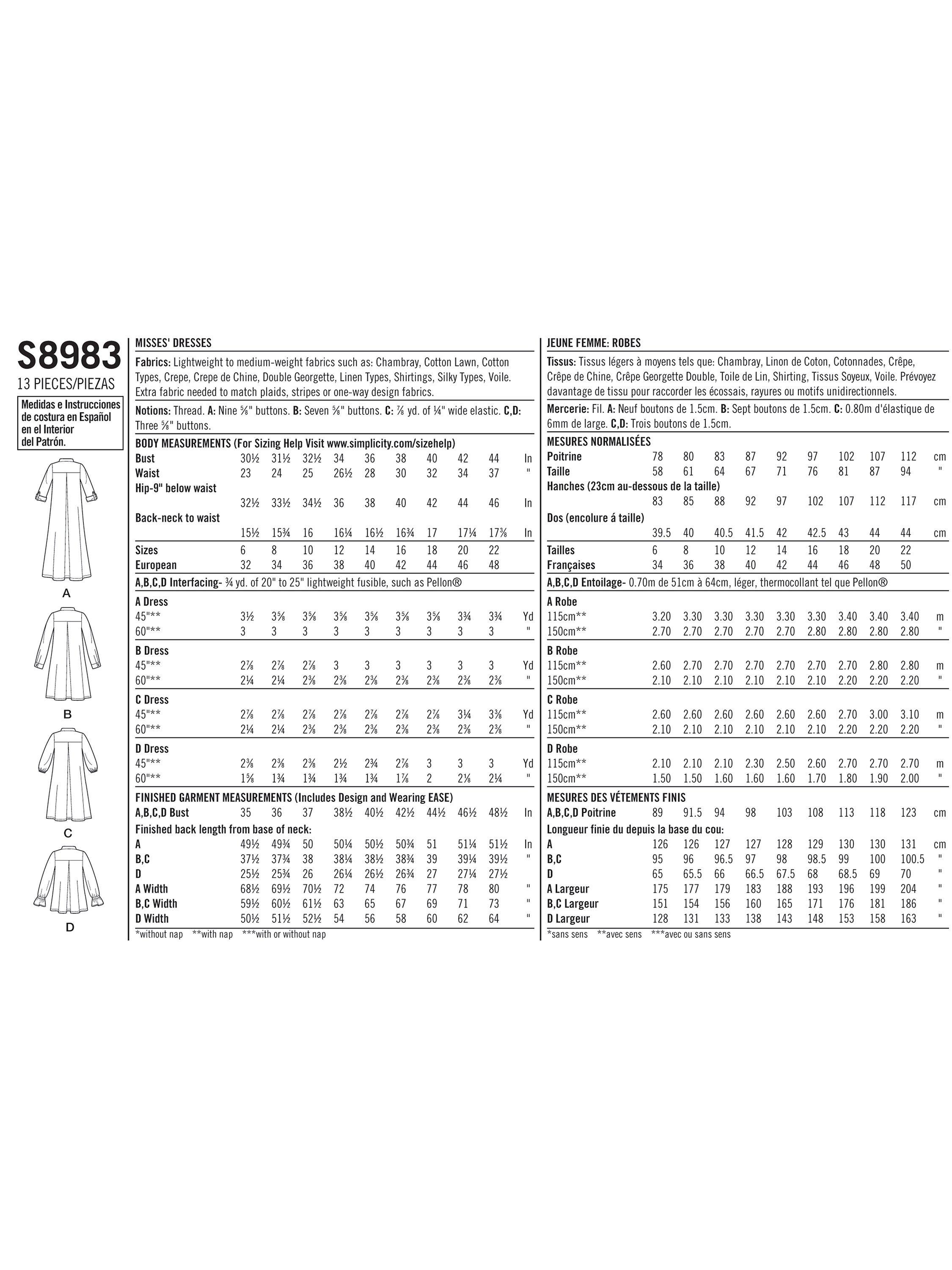 SimplicityWomen's Loose Dress Sewing Pattern, 8983
