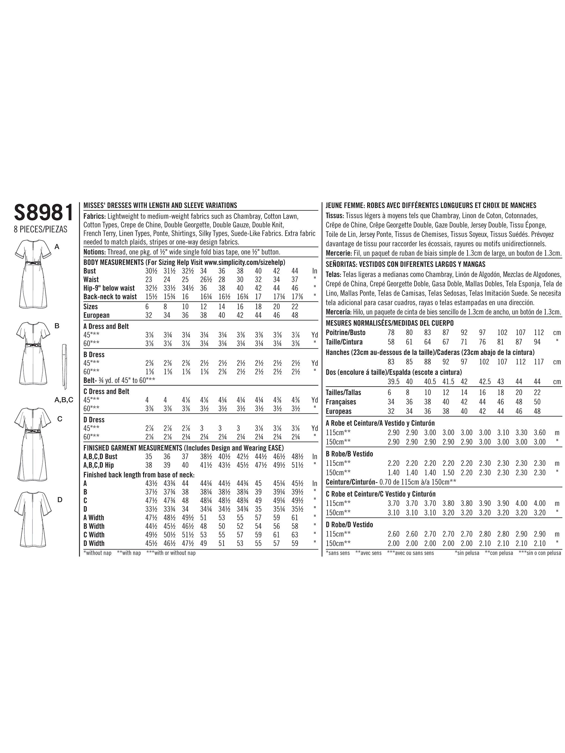 SimplicityWomen's Pull-On Dress Sewing Pattern, 8981