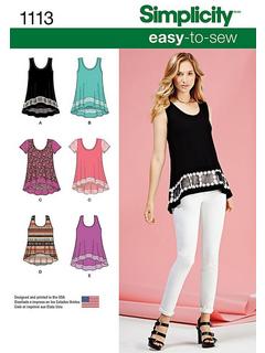 Renew your warm-weather essentials with the fluid top design provided in this easy sewing pattern from Simplicity. The package includes simple instructions and templates for a sleeveless fluid top with a round neck and an asymmetric hem with an optional contrasting panel detailing. The model is mainly designed for stretch knits.