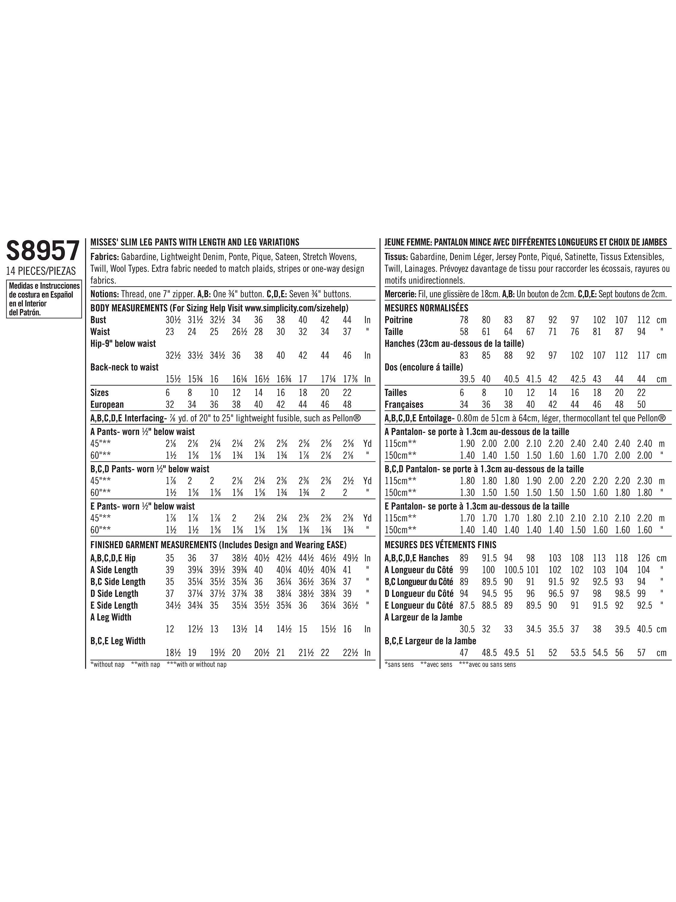 SimplicityWomen's Slim Fit Trousers Sewing Pattern, 8957