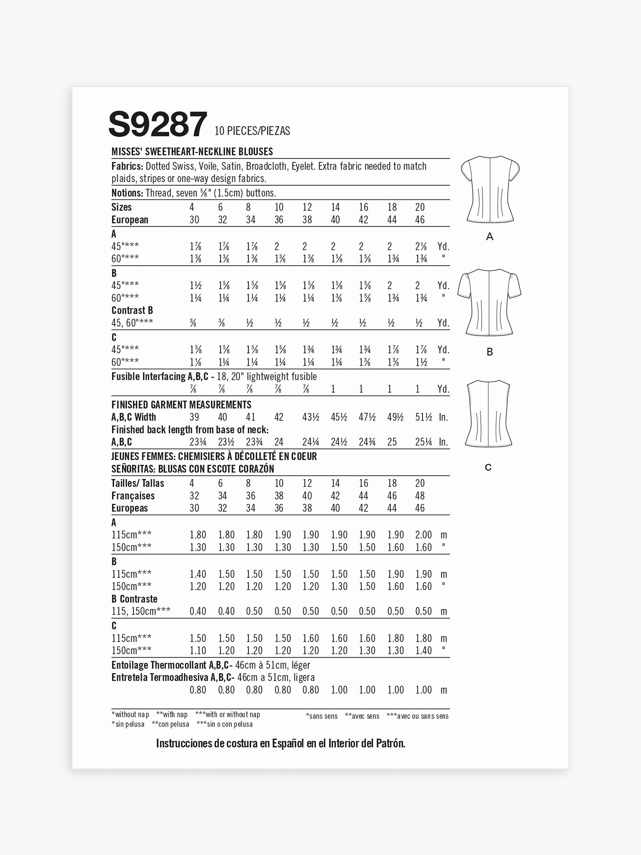 SimplicityWomens Sweetheart Blouse Sewing Pattern, SS9287